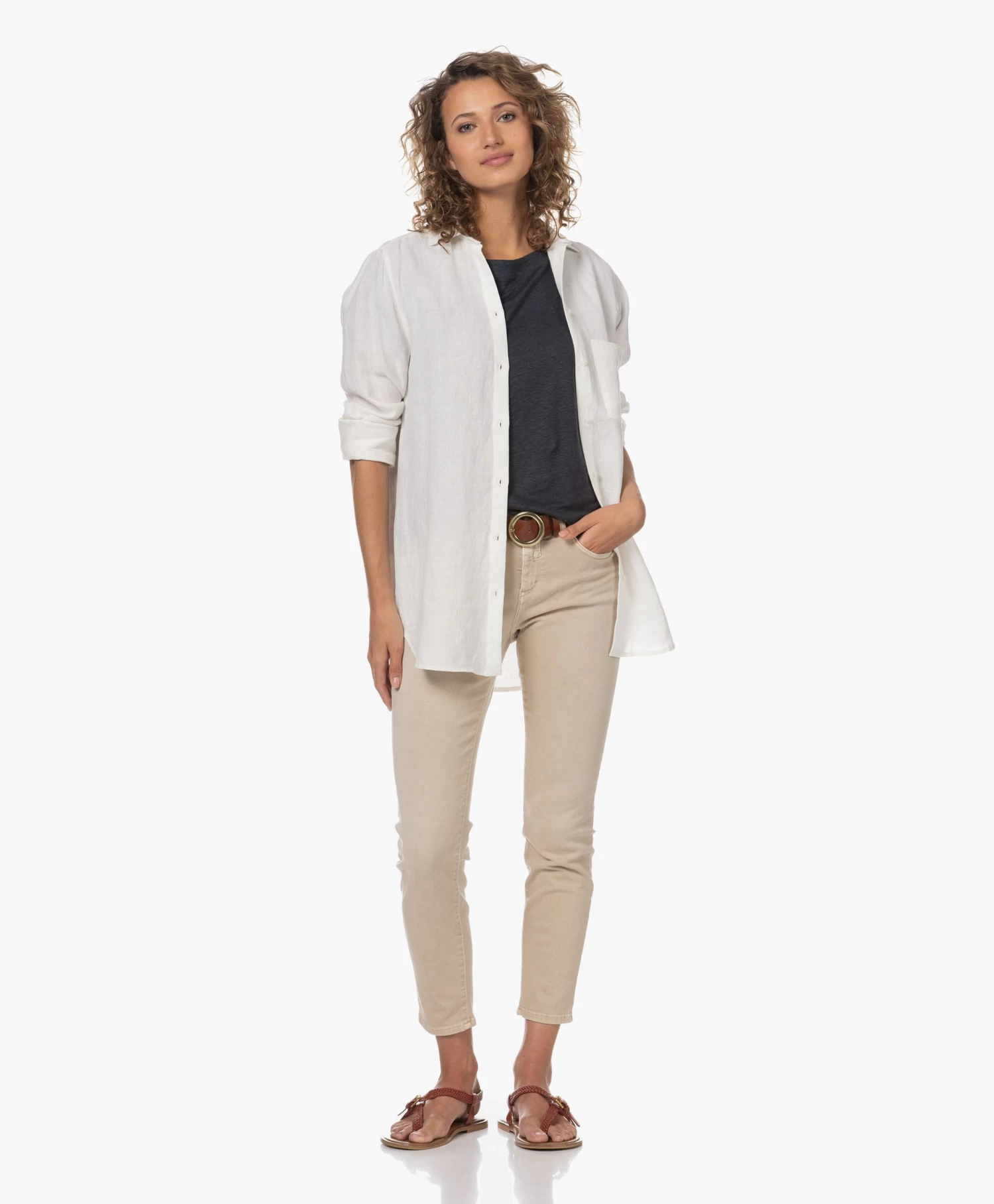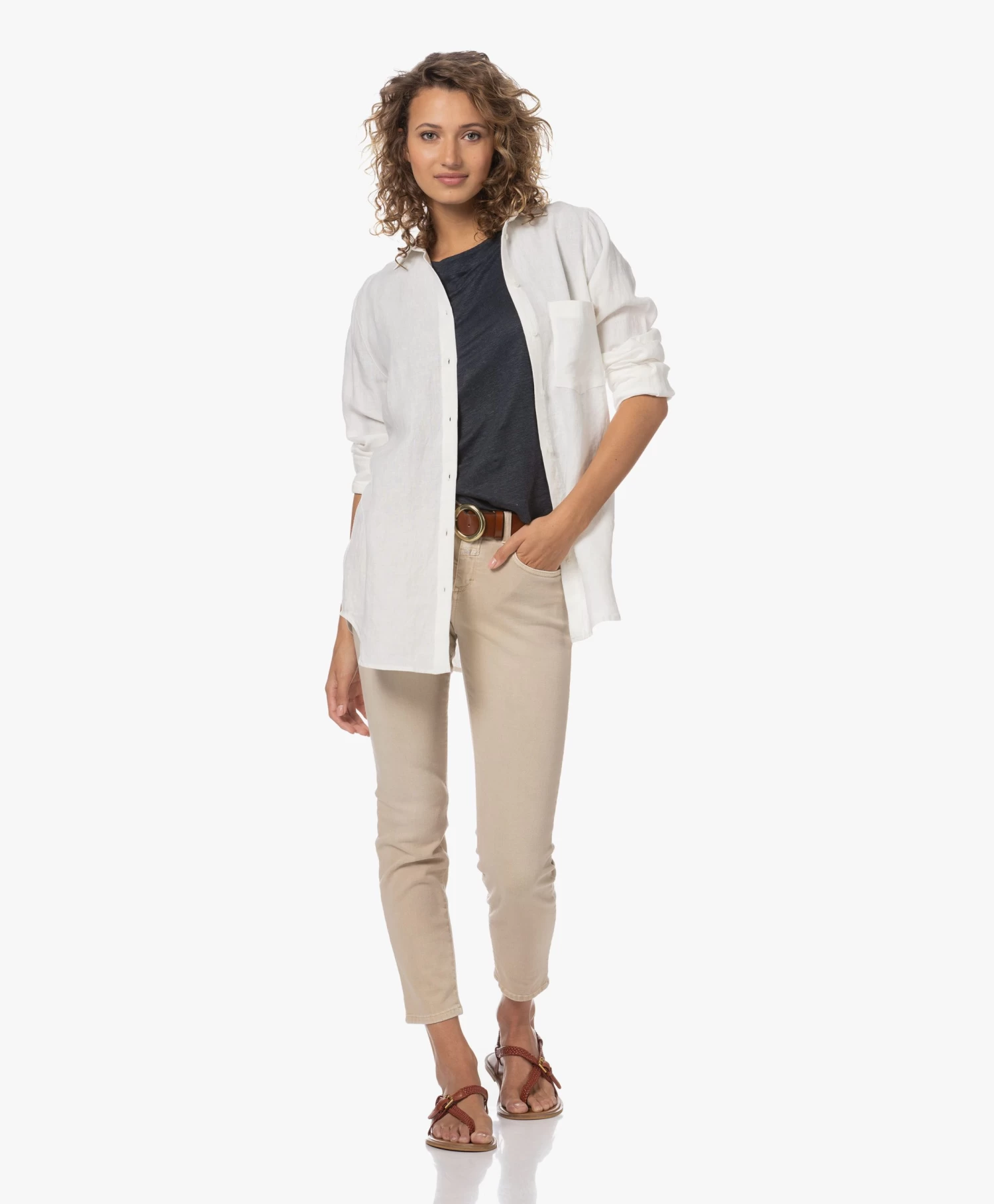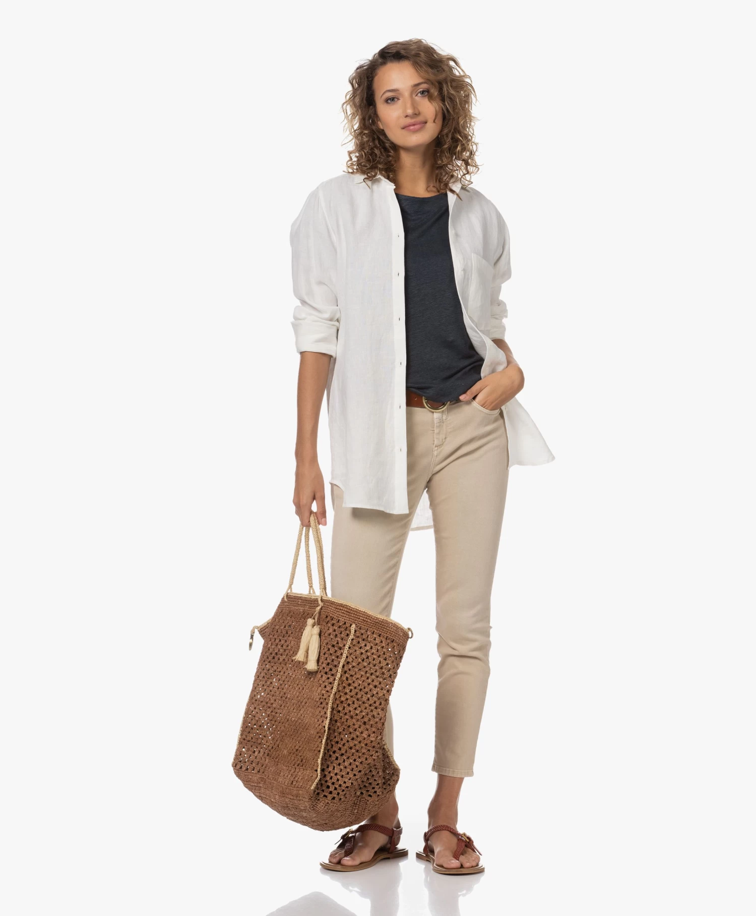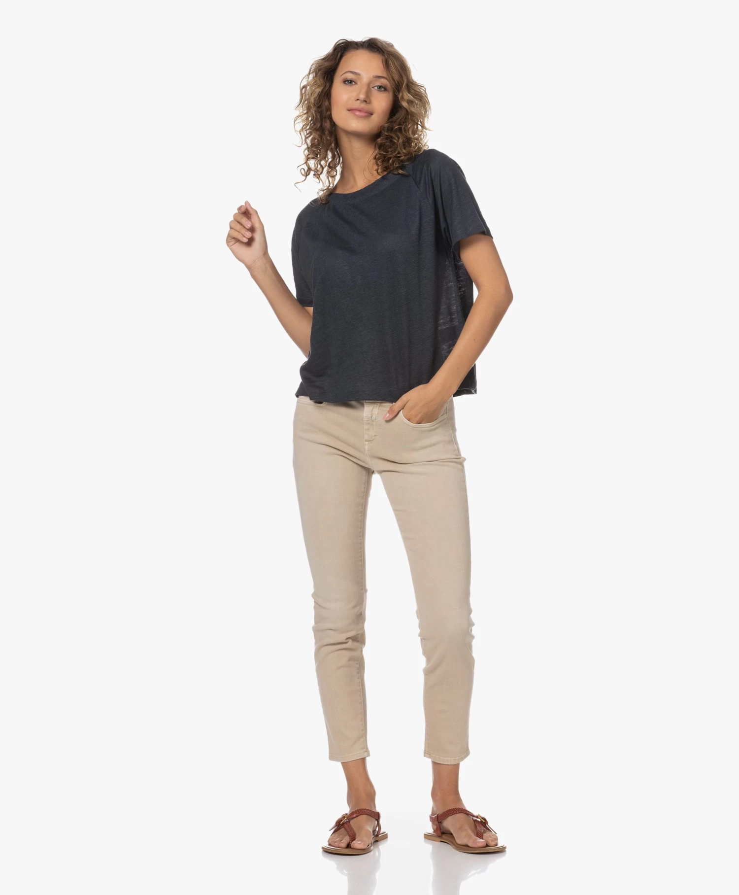 Dit donkerblauwe linnen T-shirt Mila van by-bar is jouw nieuwe favoriet voor al je casual gelegenheden. Het T-shirt met brede, ronde halslijn is ontworpen met raglanmouwen en heeft een nonchalante feel door zowel de losvallende pasvorm als de linnen kwaliteit slub-jersey met een onregelmatige, natuurlijke feel.