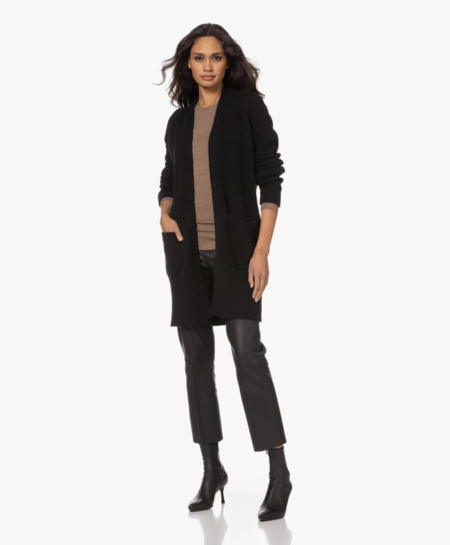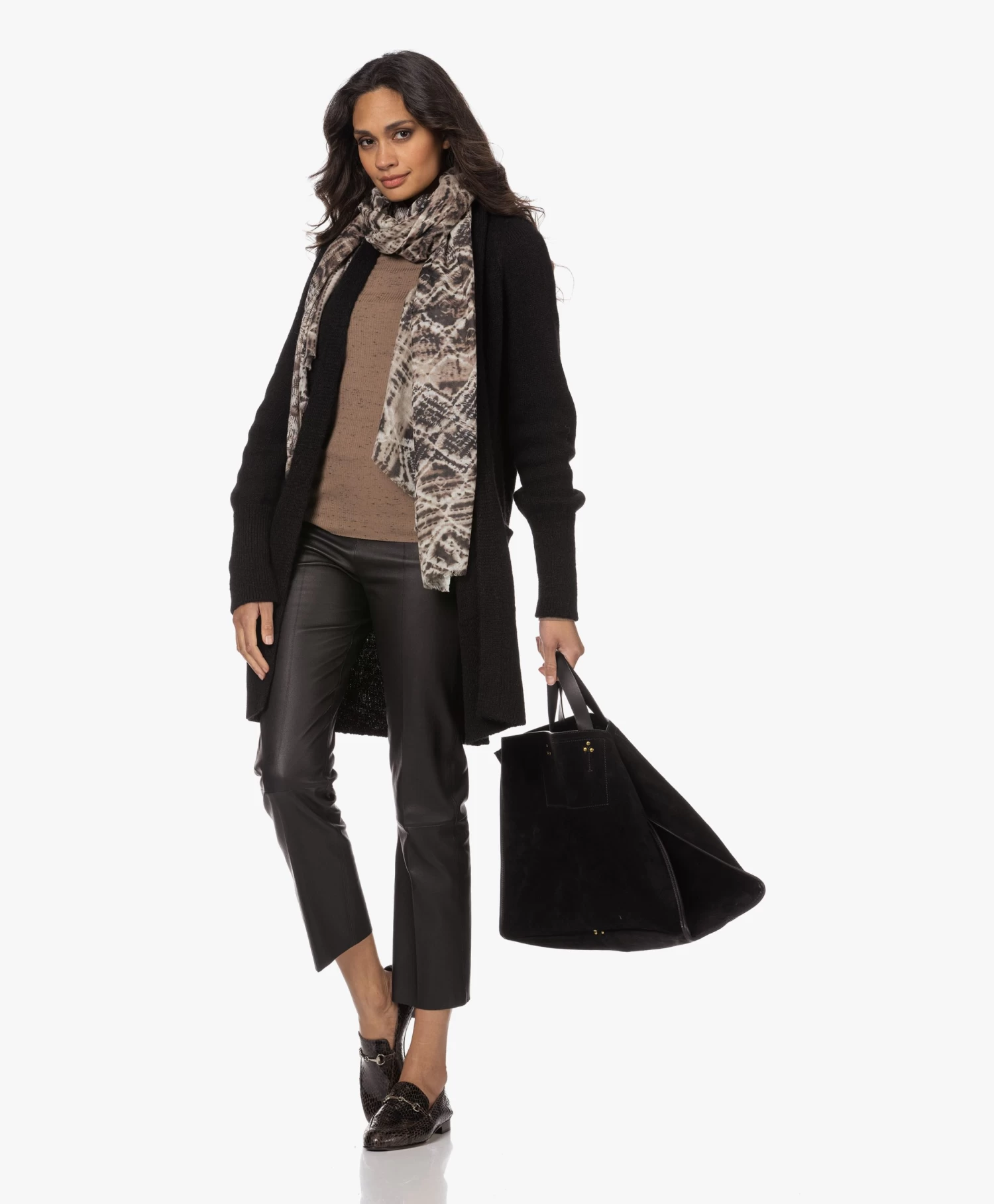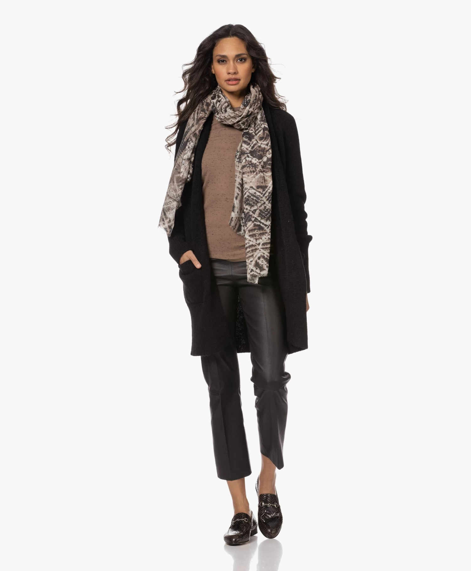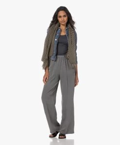 By Malene Birger’s Nimas is een essential T-shirt met lange mouwen, gemaakt van rib-jersey met een natuurlijke stretch. De stof is ribgebreid van mokkabruin en zwart gemêleerde viscose met een vleugje wol. Het slim-fit shirt heeft een hoge ronde hals, de lasercut zoom en mouwzoom brengen een subtiel minimalistisch element. Mooi met een blazer of vest, maar minstens zo mooi zonder.