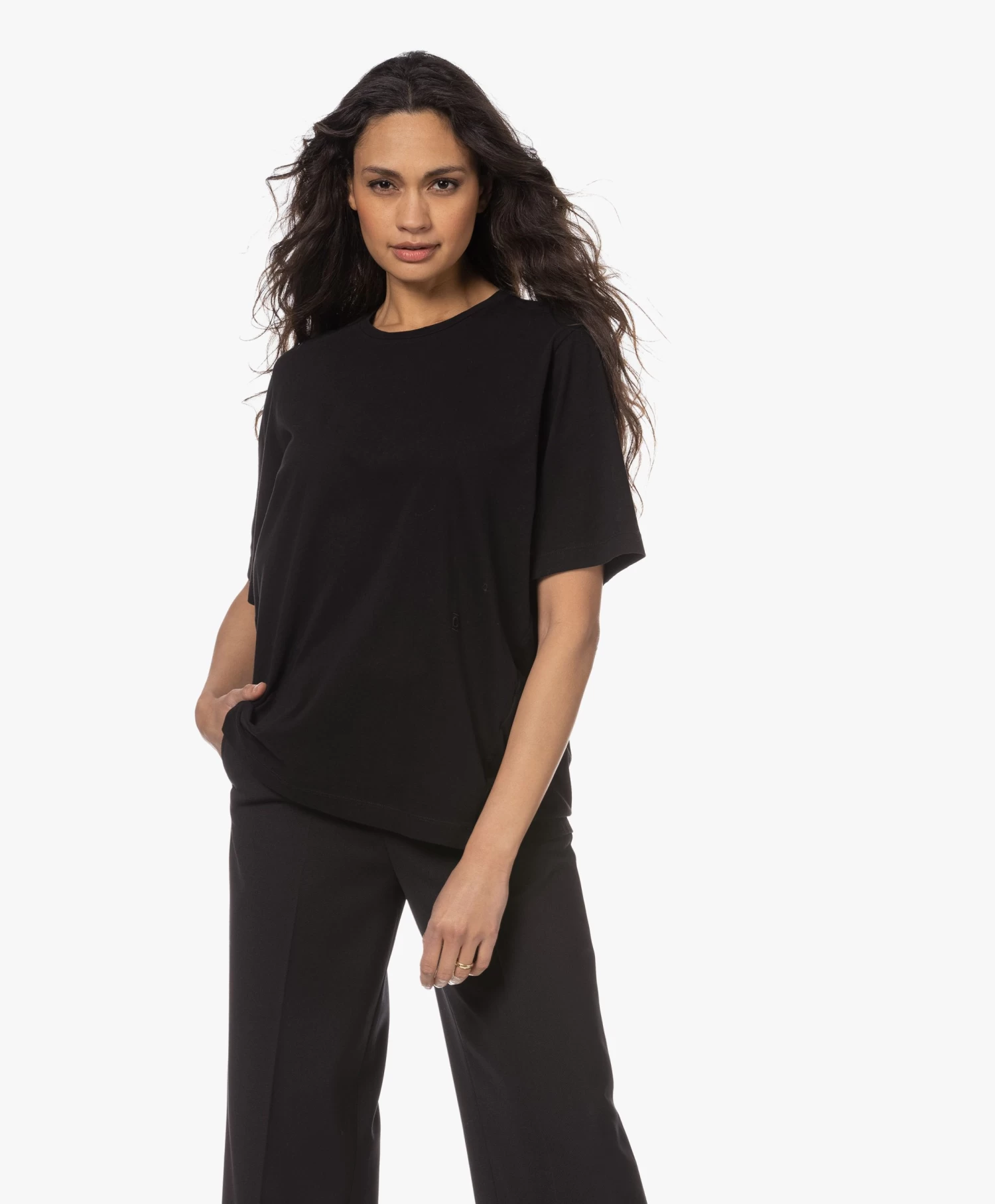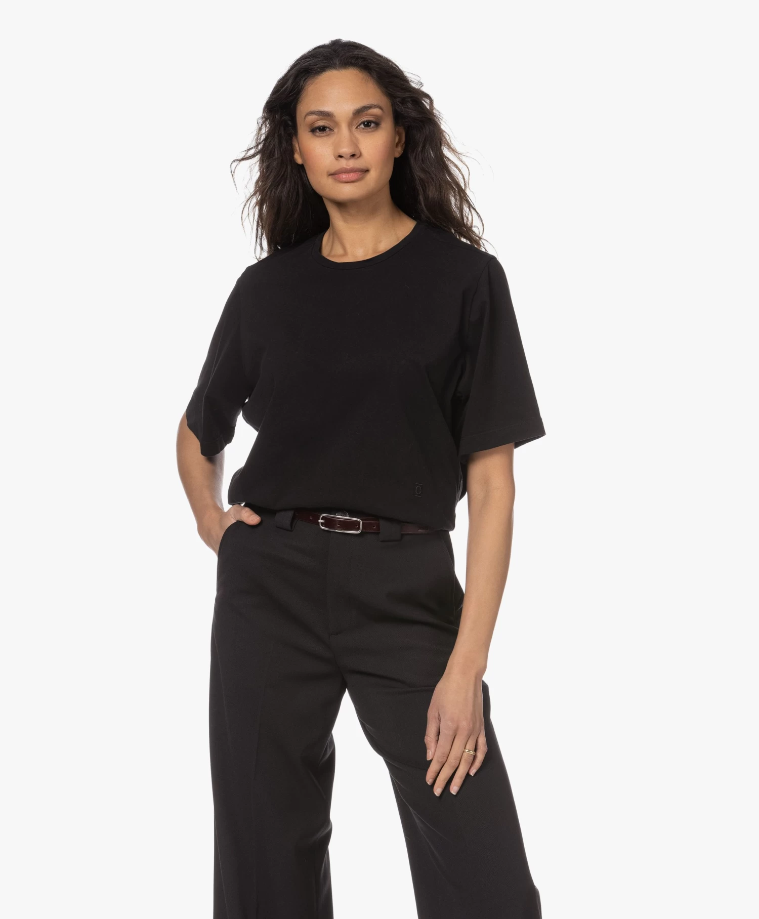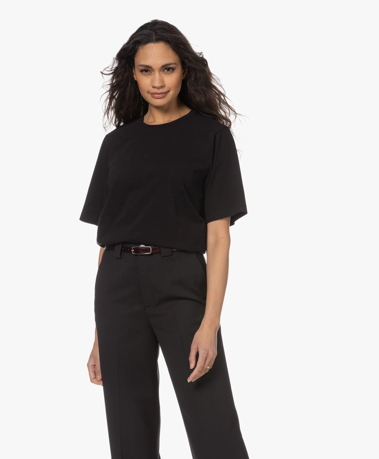 Zo zien we basics graag: met een loose-fit pasvorm, korte rechte mouwen én een klassieke zwarte tint. Closed ontwerpt dit korte mouwen T-shirt met verschoven zijnaden, korte zijsplitten en een uiterst verfijnd logoborduursel aan de voorkant. De soepele jersey is gemaakt van puur, biologisch katoen – voor ons een enorme win!