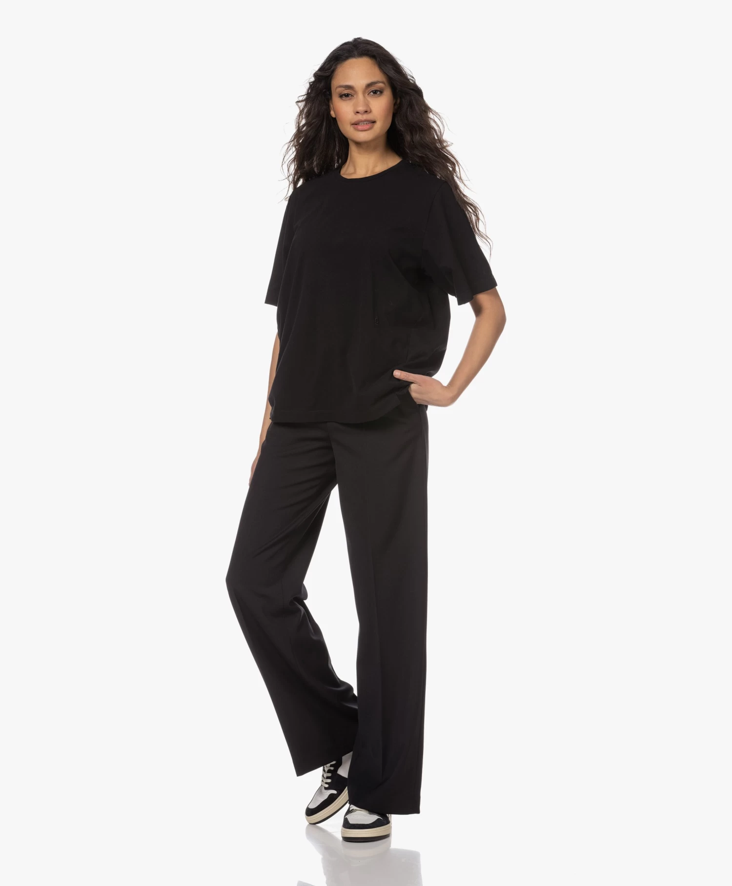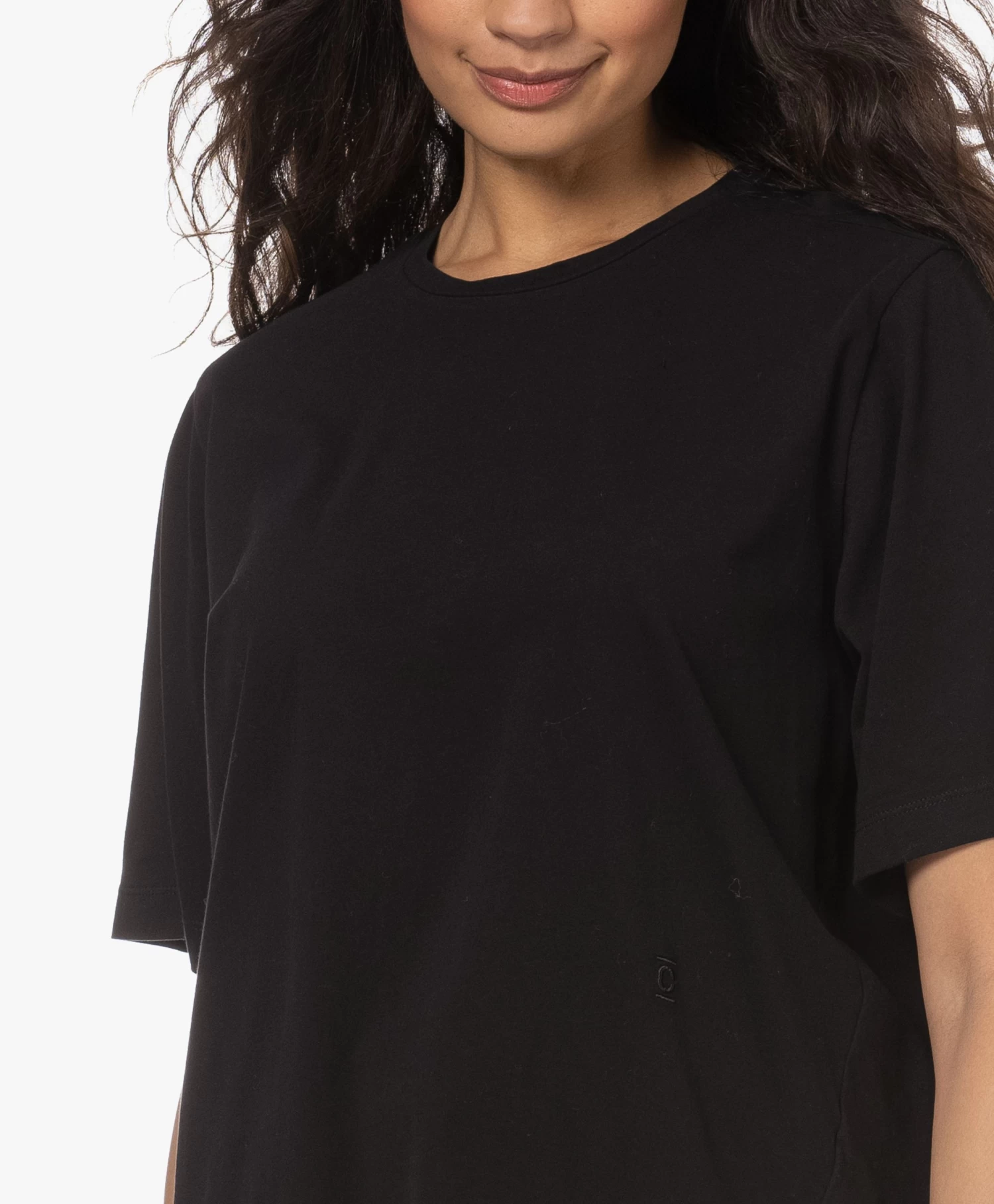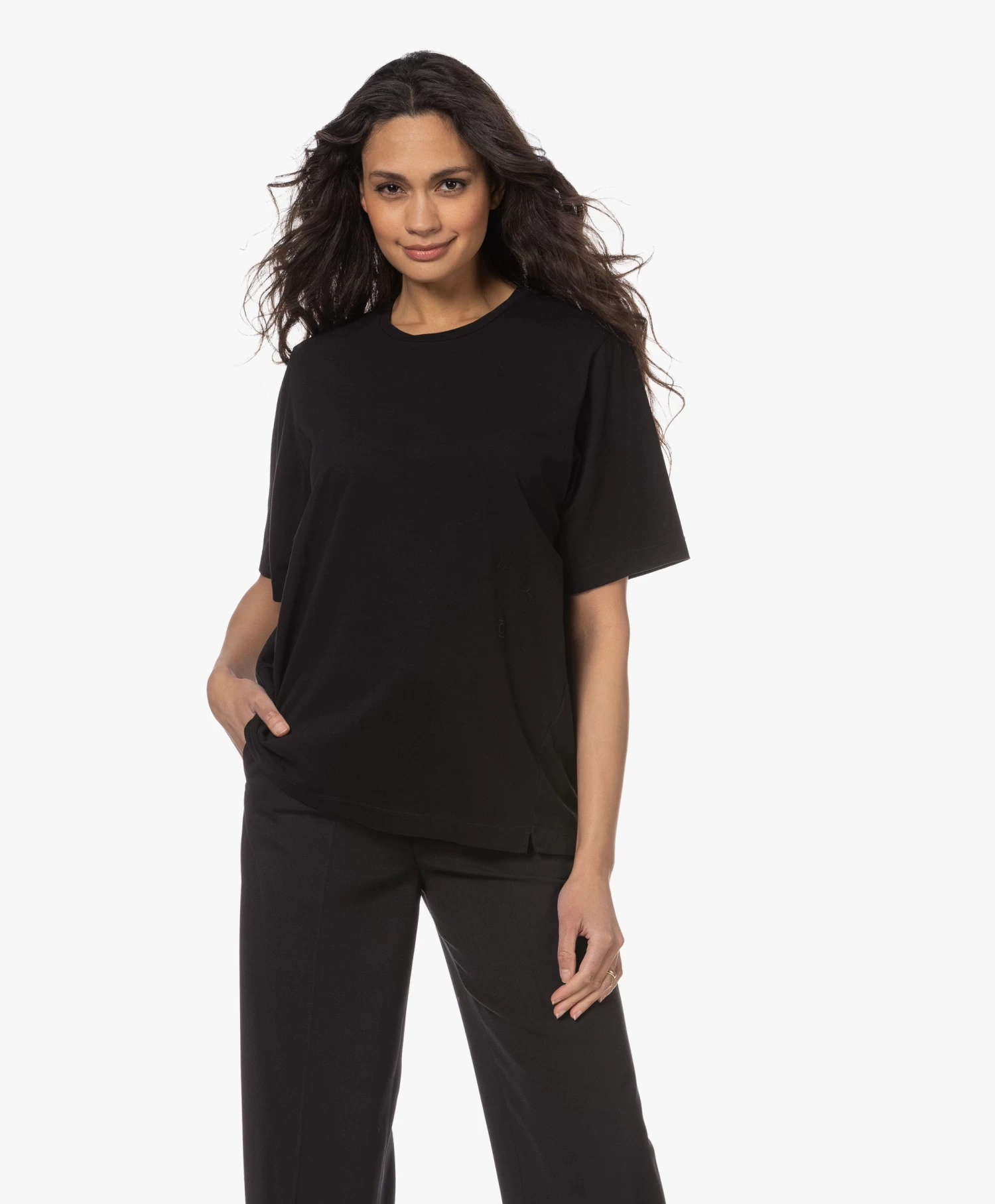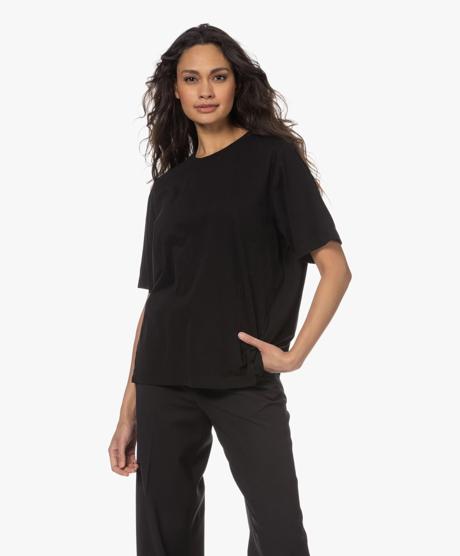 Zo zien we basics graag: met een loose-fit pasvorm, korte rechte mouwen én een klassieke zwarte tint. Closed ontwerpt dit korte mouwen T-shirt met verschoven zijnaden, korte zijsplitten en een uiterst verfijnd logoborduursel aan de voorkant. De soepele jersey is gemaakt van puur, biologisch katoen – voor ons een enorme win!