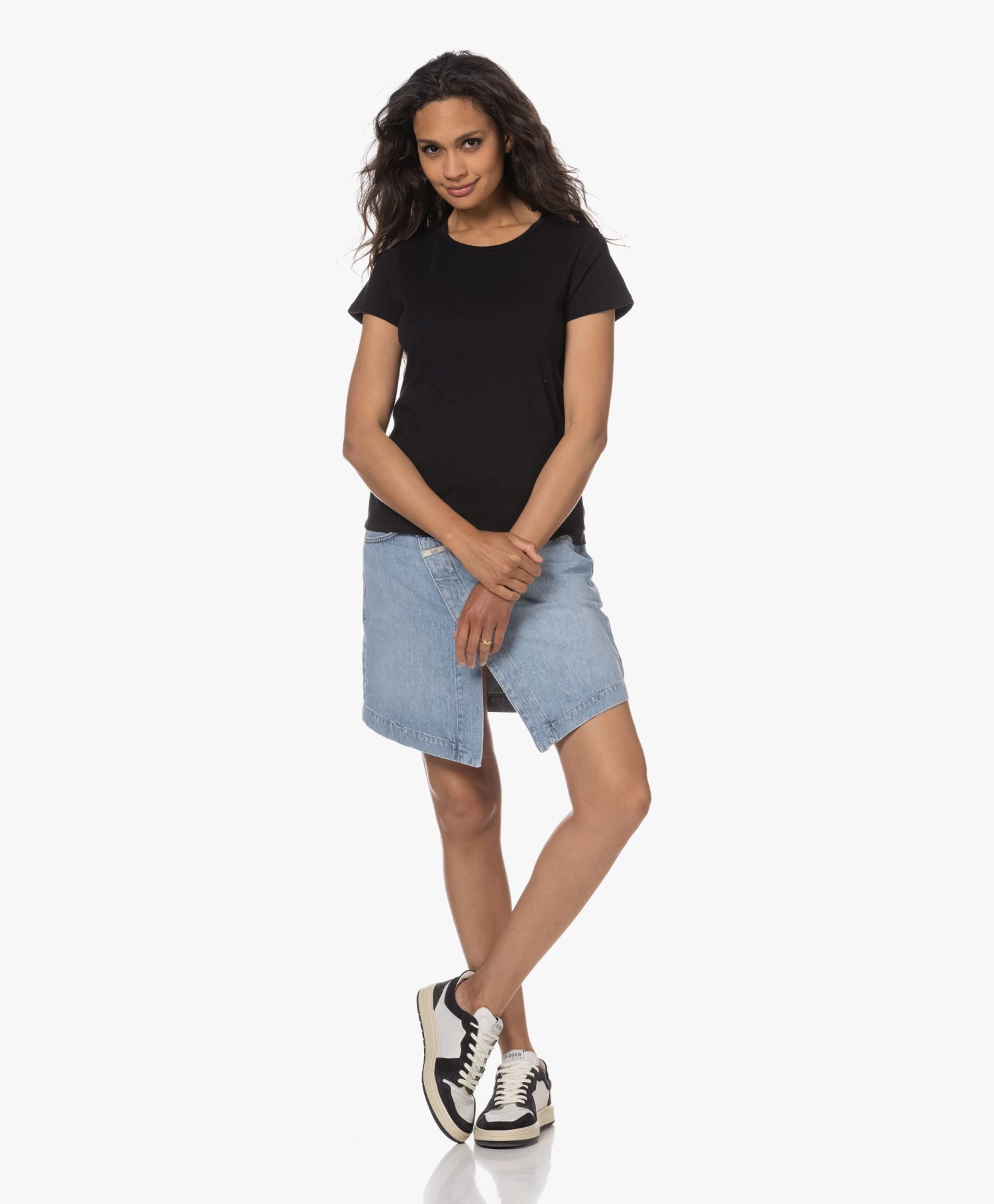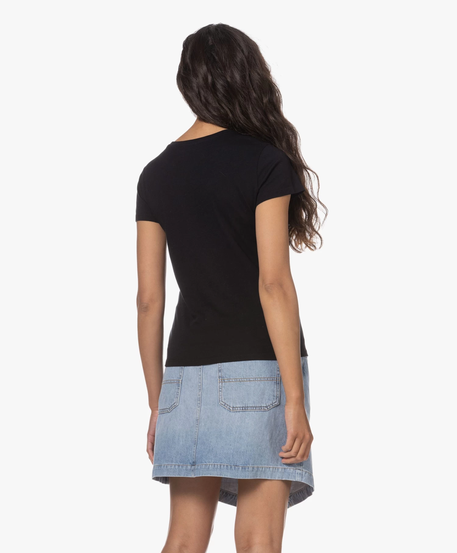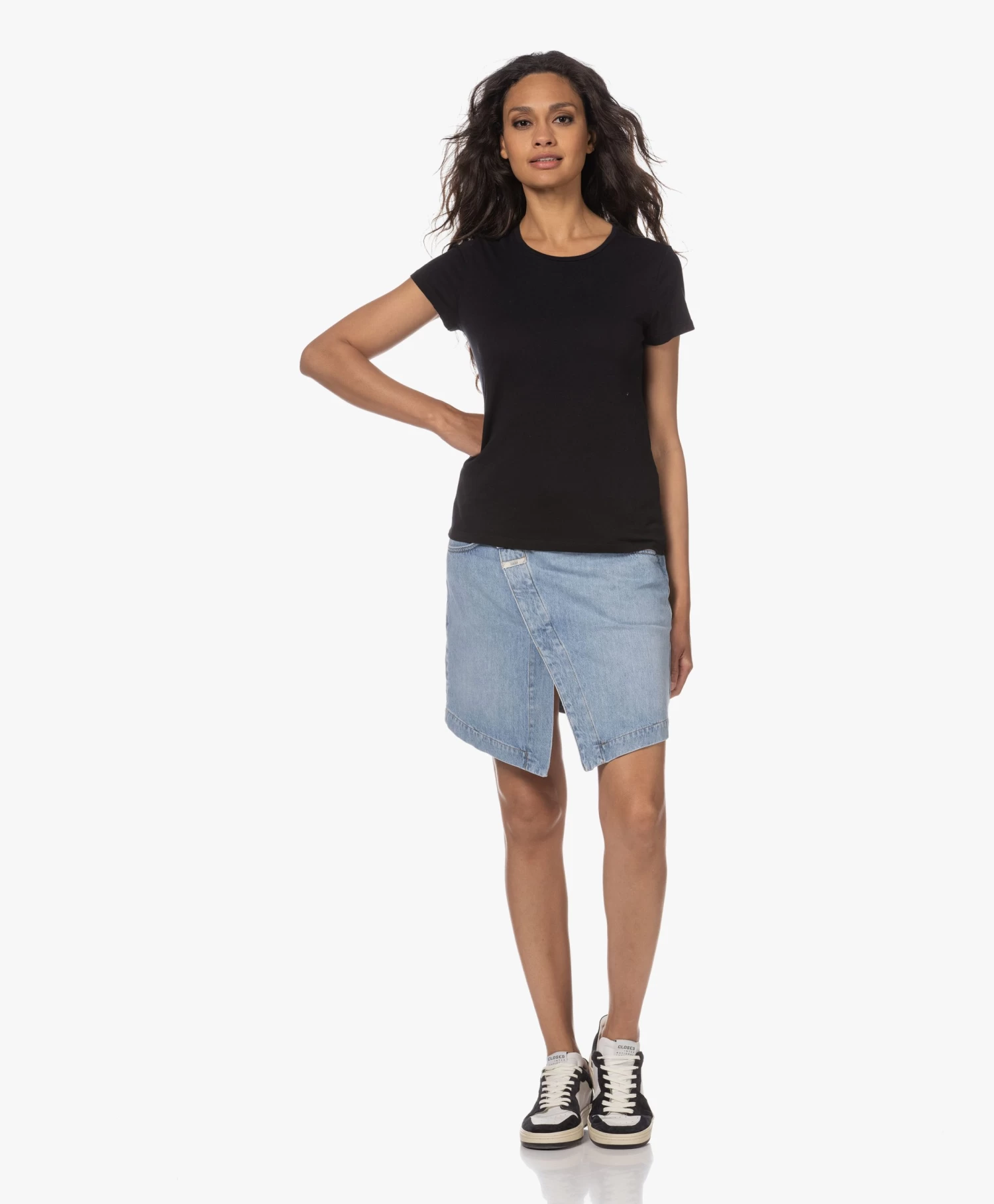 Basic essentials draag je elke dag: het is geen overbodige luxe om wat extra aandacht aan de kwaliteit te besteden. Wat dat betreft zit je met Closedâs zwarte T-shirt met ronde hals en korte mouwen helemaal goed. De lichtgewicht single jersey is gemaakt van het fijnste katoengaren met een ultra-zachte touch. Dankzij de mechanische stretch sluit het shirt mooi aan.