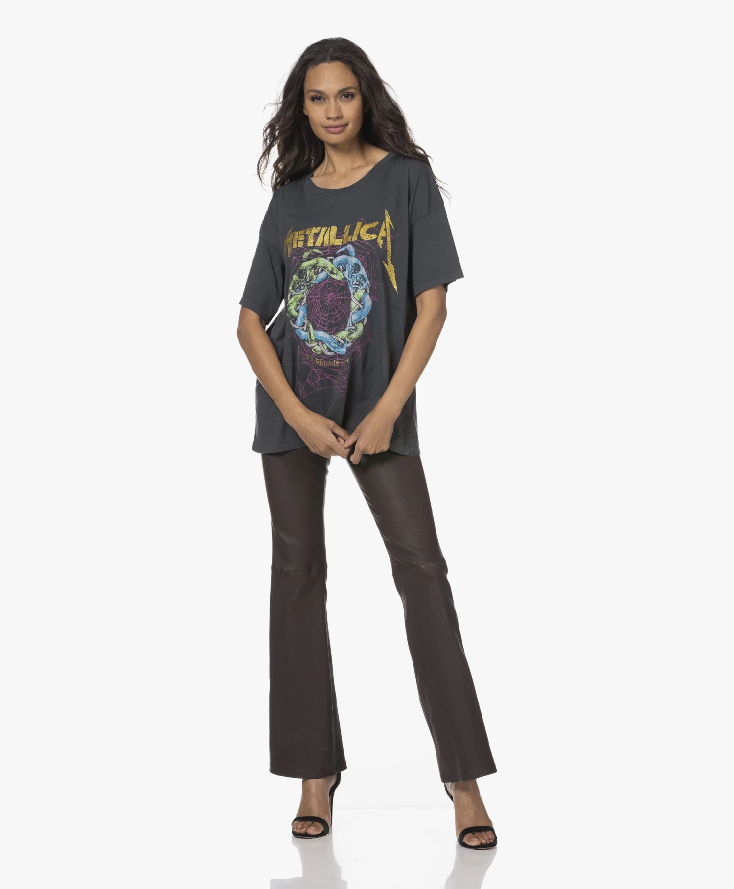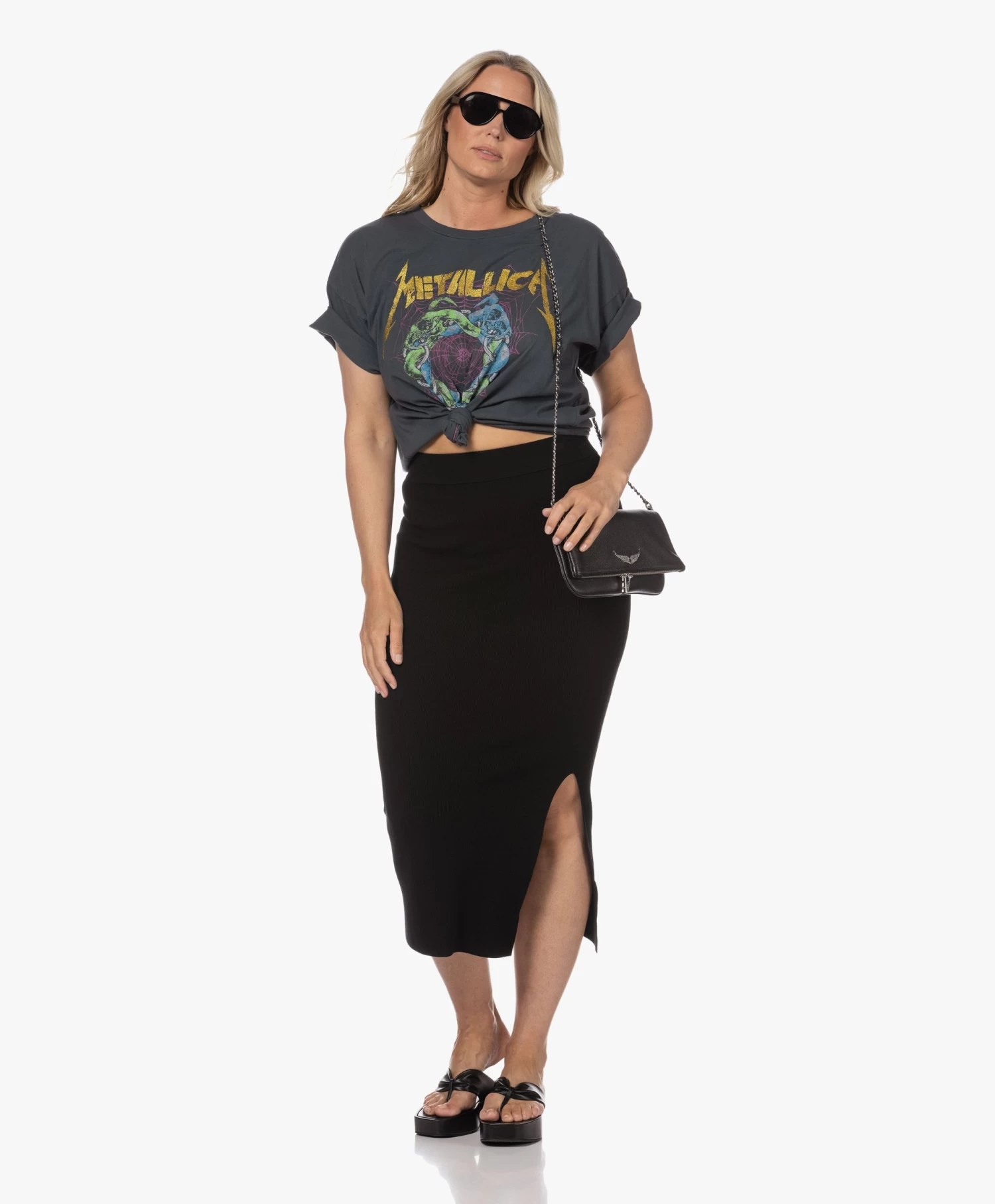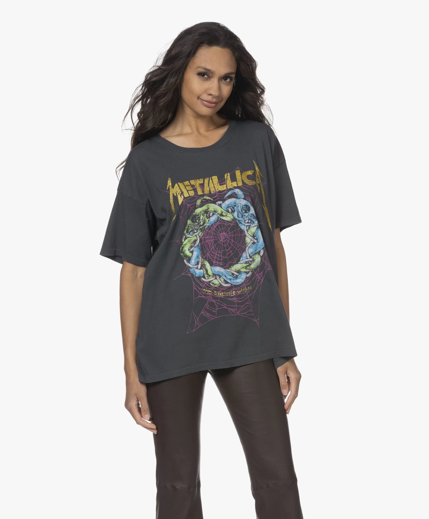 Metallica lovers opgelet! Daydreamer brengt eerbetoon aan het legendarische nummer ‘The Struggle Within’ van metal band Metallica met dit The Struggle Within Merch T-shirt. Gemaakt van een soepele katoenkwaliteit in zwart met een gewassen finish voor een vervaagde look en kleur. Op het T-shirt staat het artwork van hun hit centraal dat uitgevoerd is in gouden glitters op zowel de voor- als achterkant.Â