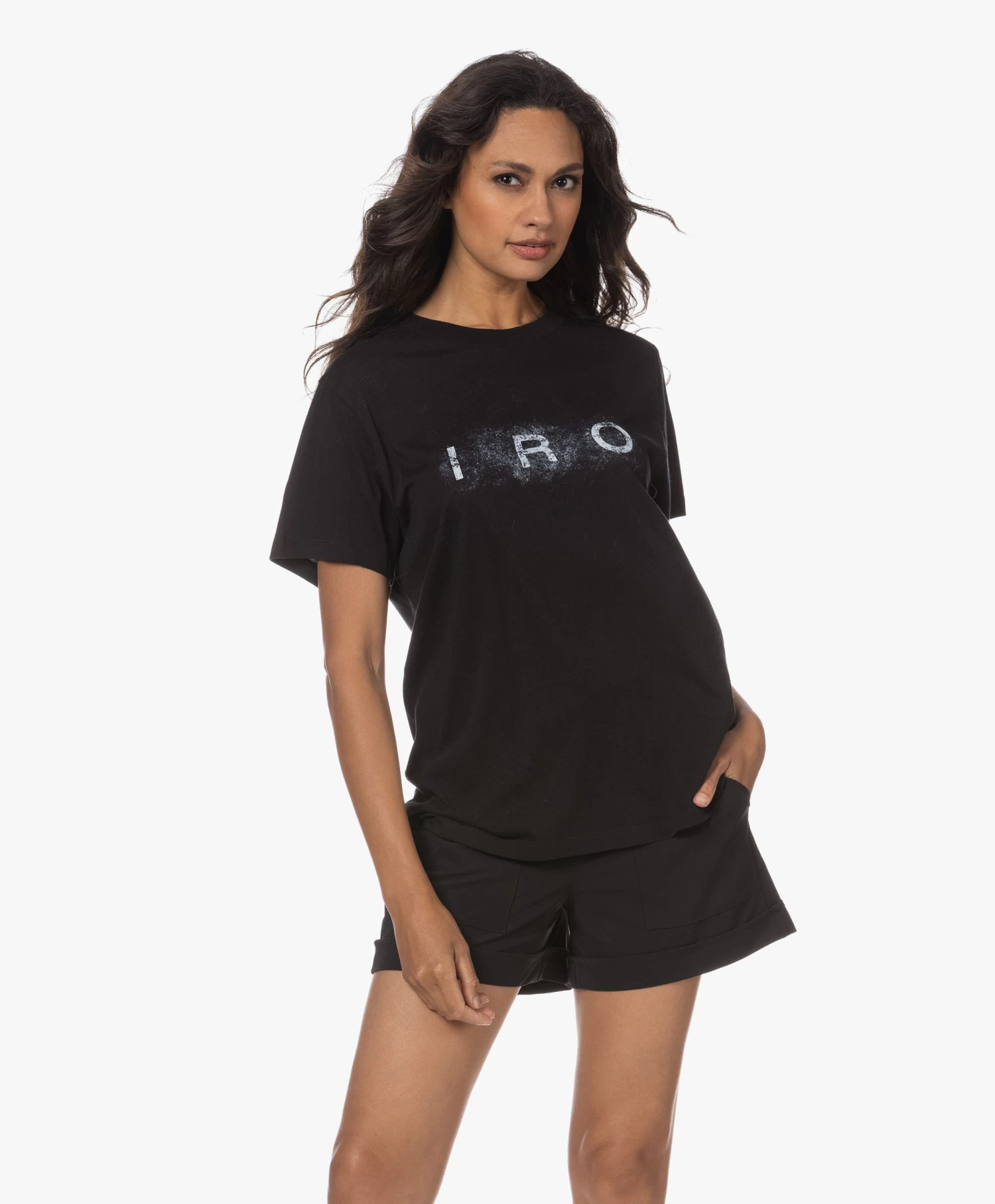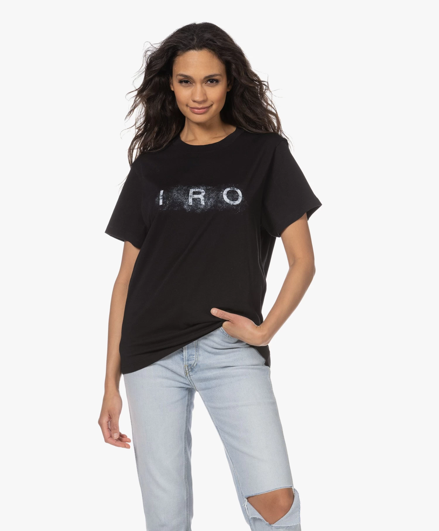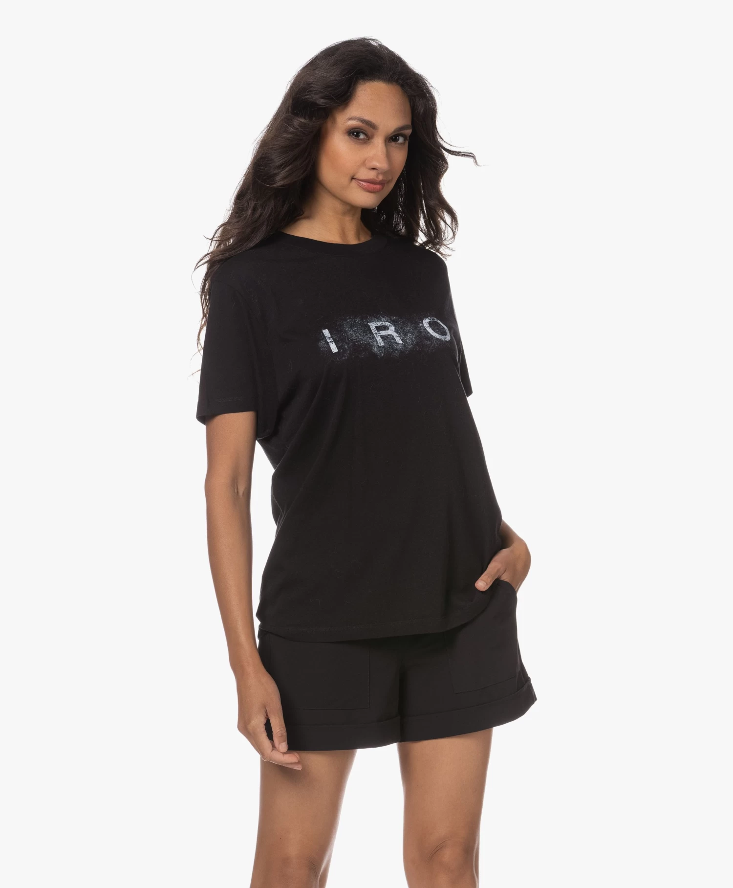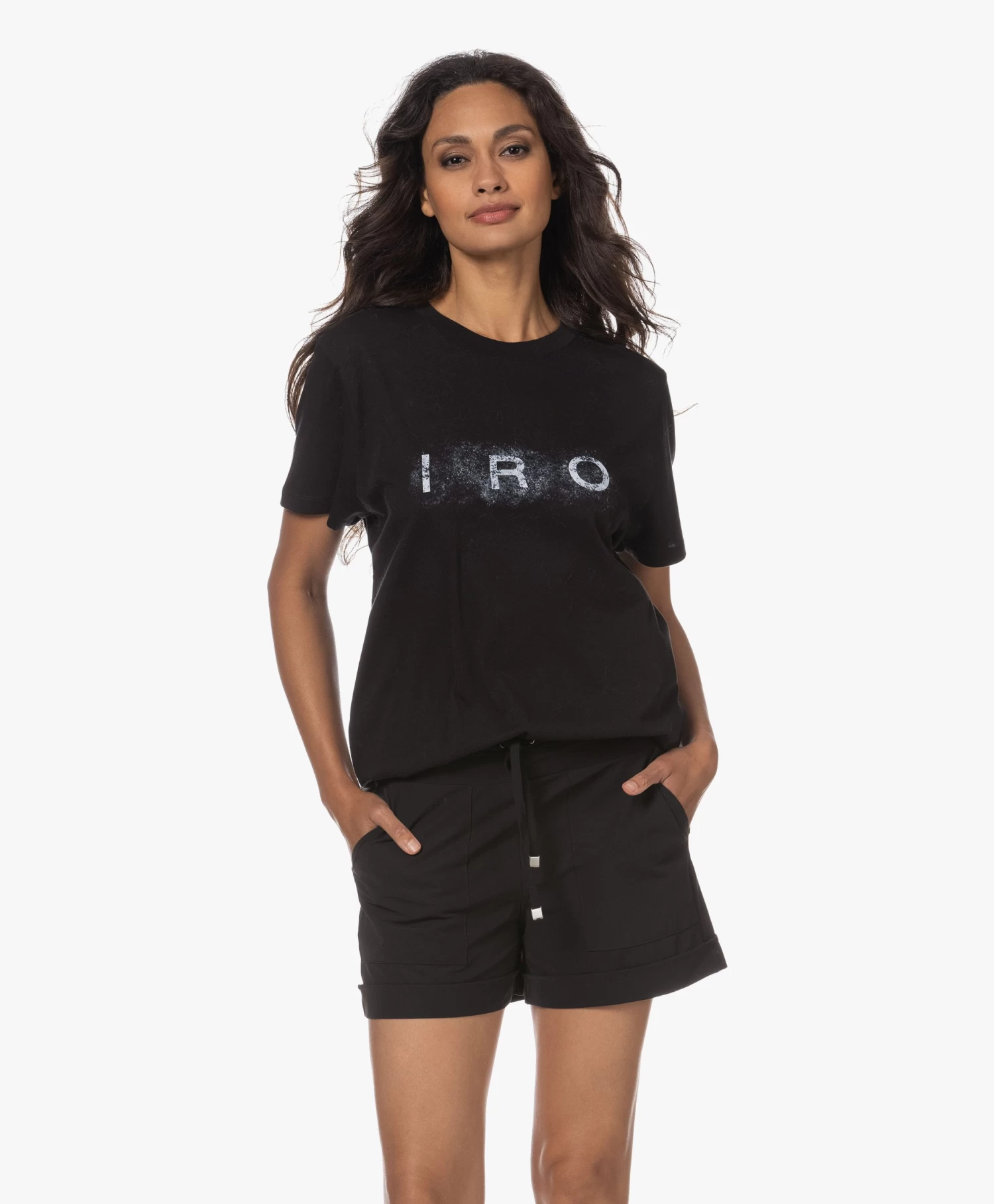 Van ‘I’m with the band’ naar ‘I’m with the brand’: het scheelt maar 1 letter. IRO weet als geen ander haar logo-shirts de uitstraling van een op een rock-concert of festival aangeschaft T-shirt mee te geven. Op de voorkant van het zwarte relaxed-fit Marcella T-shirt is de merknaam geprint in een subtiele verweerde stijl. De katoenen single jersey is uiteraard van een zachte, hoogwaardige kwaliteit.