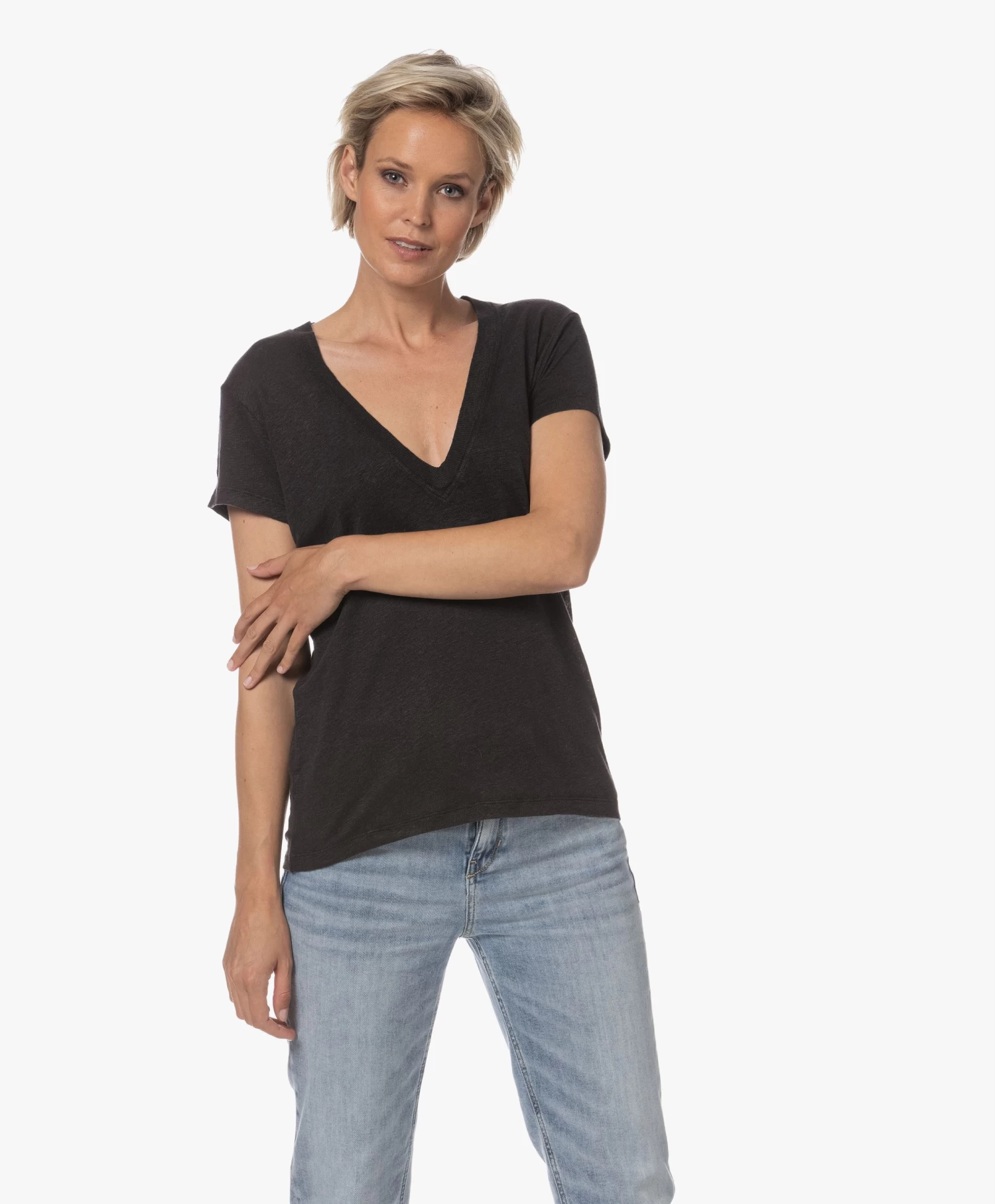 Iro Rodeo Linnen V-Hals T-Shirt – Zwart