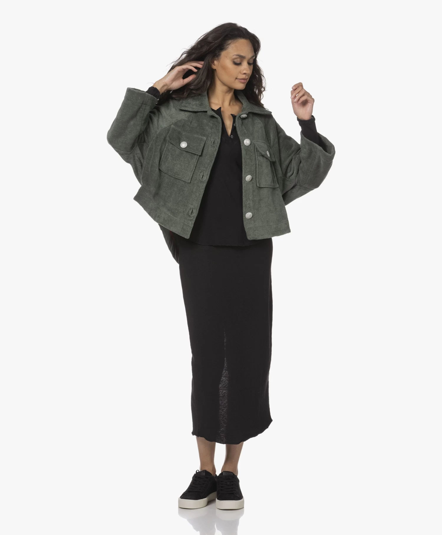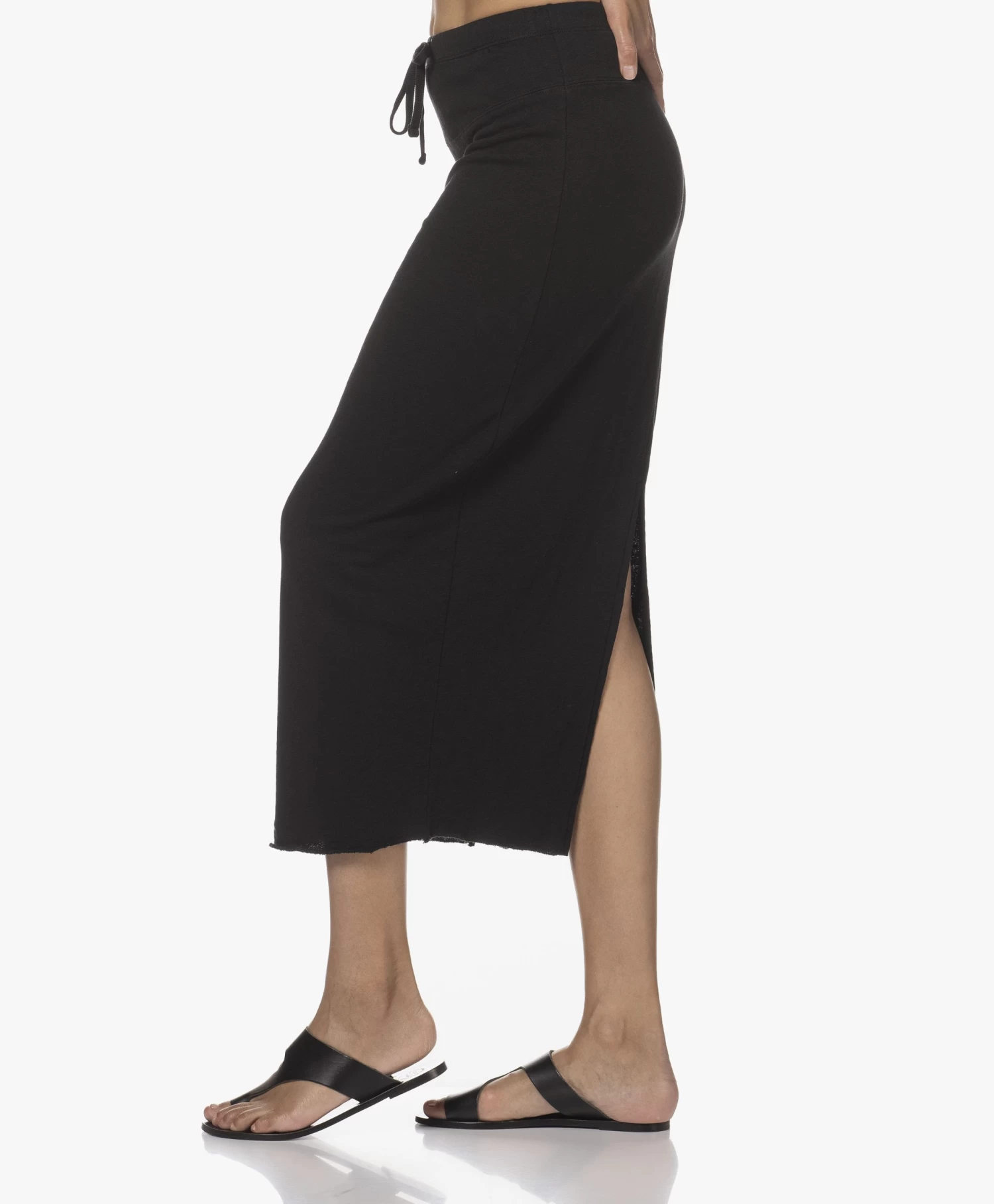 James Perse’s zwarte Fleece rok is gemaakt van niet te zware, soepelvallende French terry-jersey met een iets langere ‘lus’ aan de binnenzijde die daardoor aanvoelt als zachte badstof. De subtiel geslubde jerseykwaliteit is vervaardigd uit Supima katoen, een superieur zachte en sterke katoensoort. De kuitlange sportieve rok is ontworpen met een hoge achtersplit en een onafgewerkte zoom.