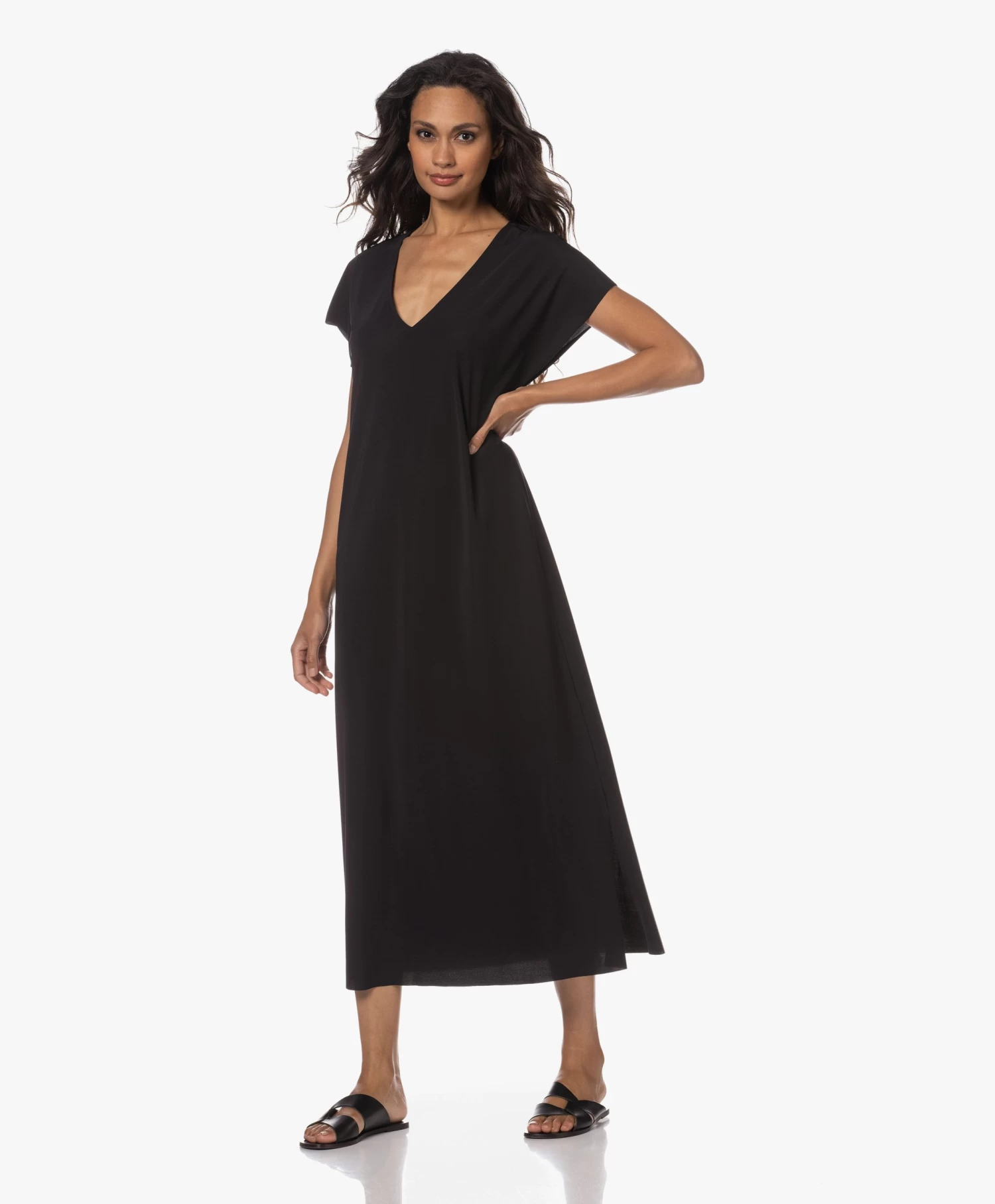 Japantky Hikari Travel Jersey Maxi Jurk – Diepzwart
