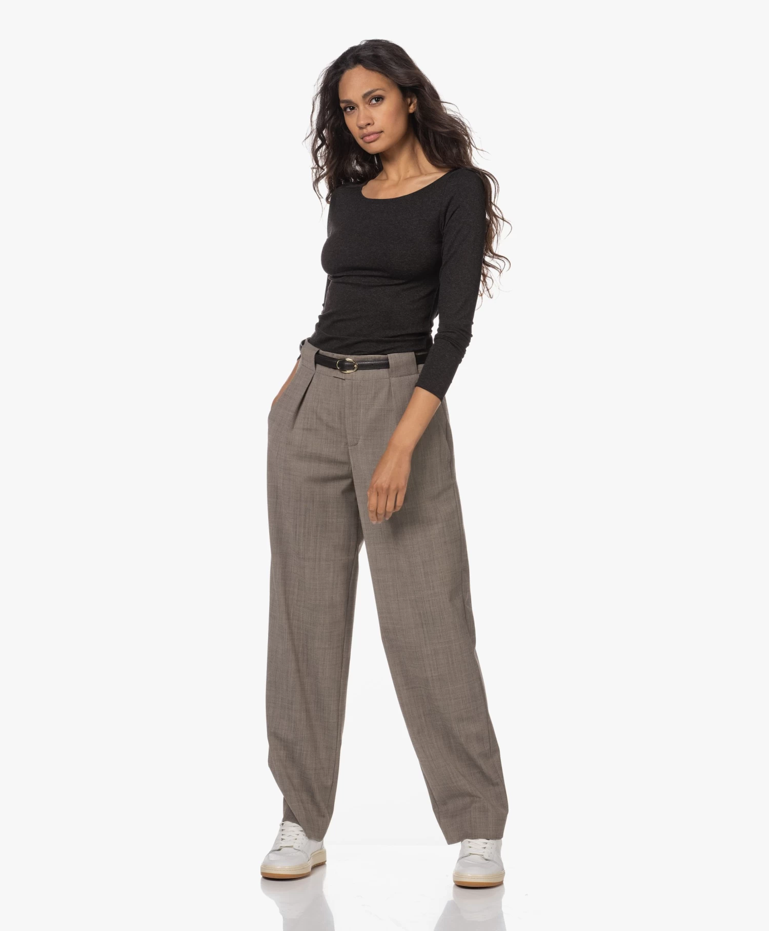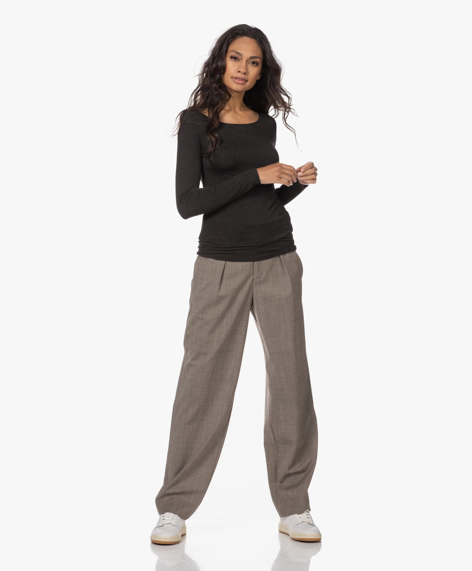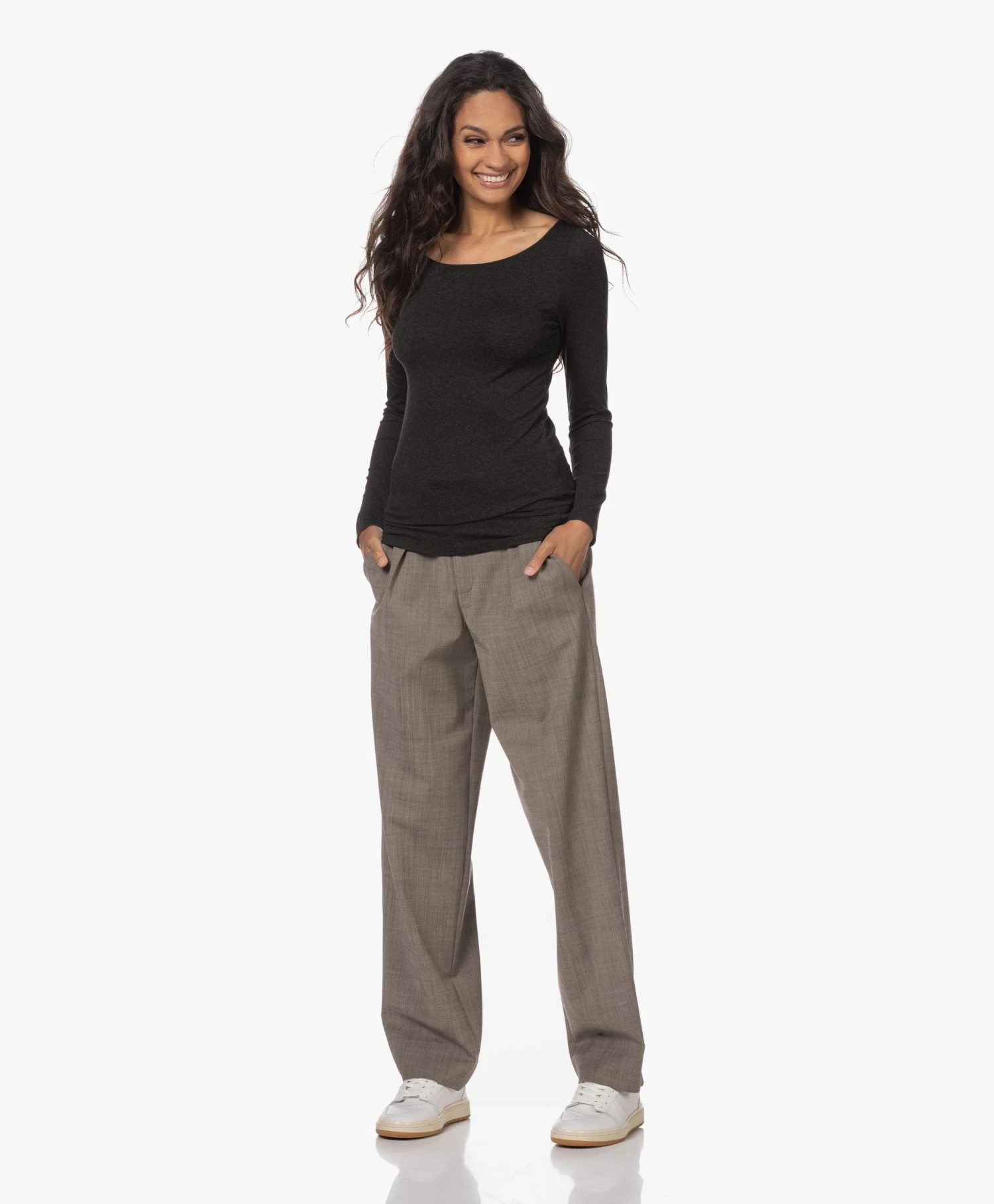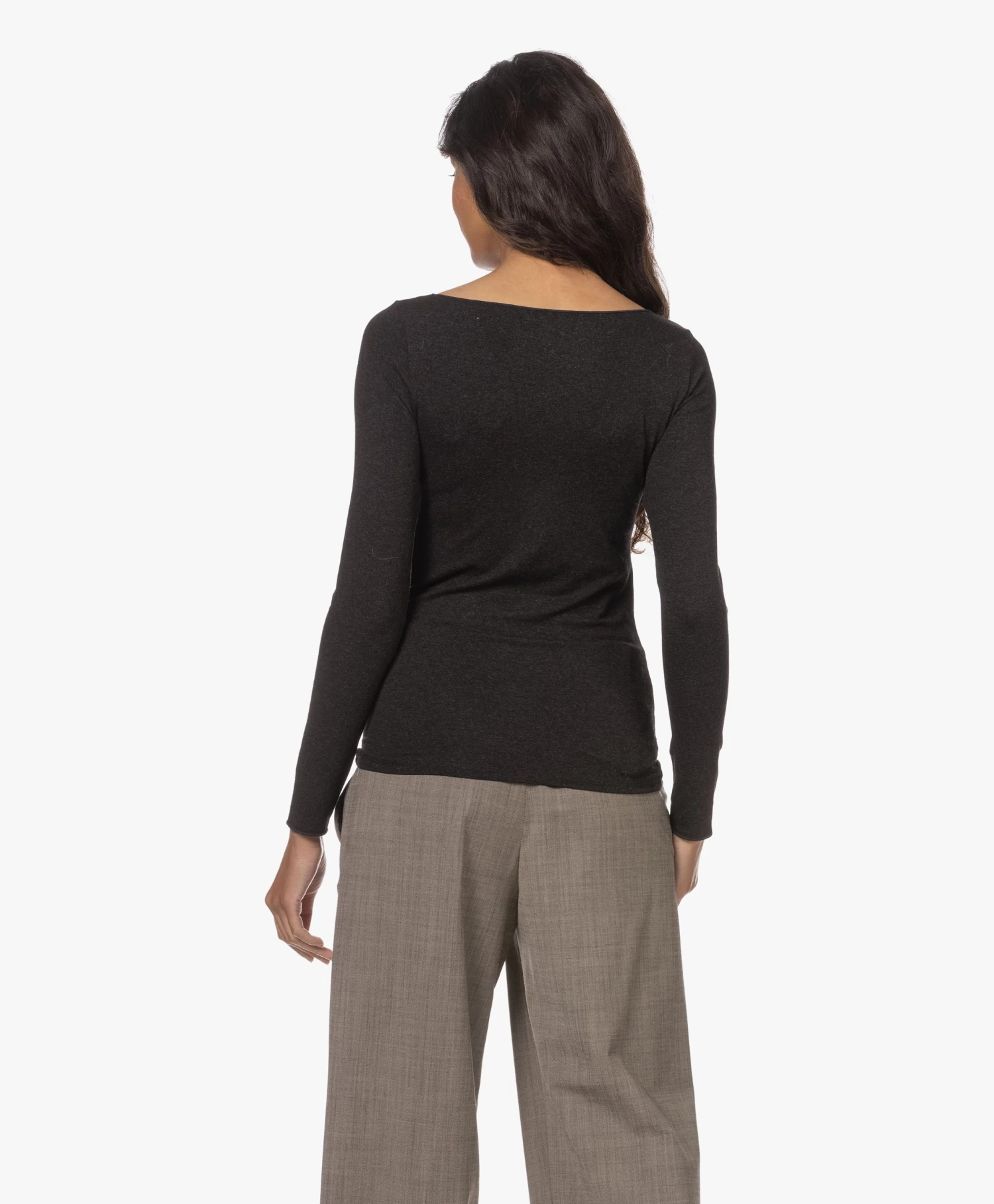 Donkergrijs gemêleerde longsleeve T-shirt van Majestic Filatures – de basis voor al je looks! Dit aangesloten ontwerp is gemaakt van de karakteristieke gewassen jersey kwaliteit van het merk van viscose met extra stretch. Voor jarenlang combinatie- en draagplezier!