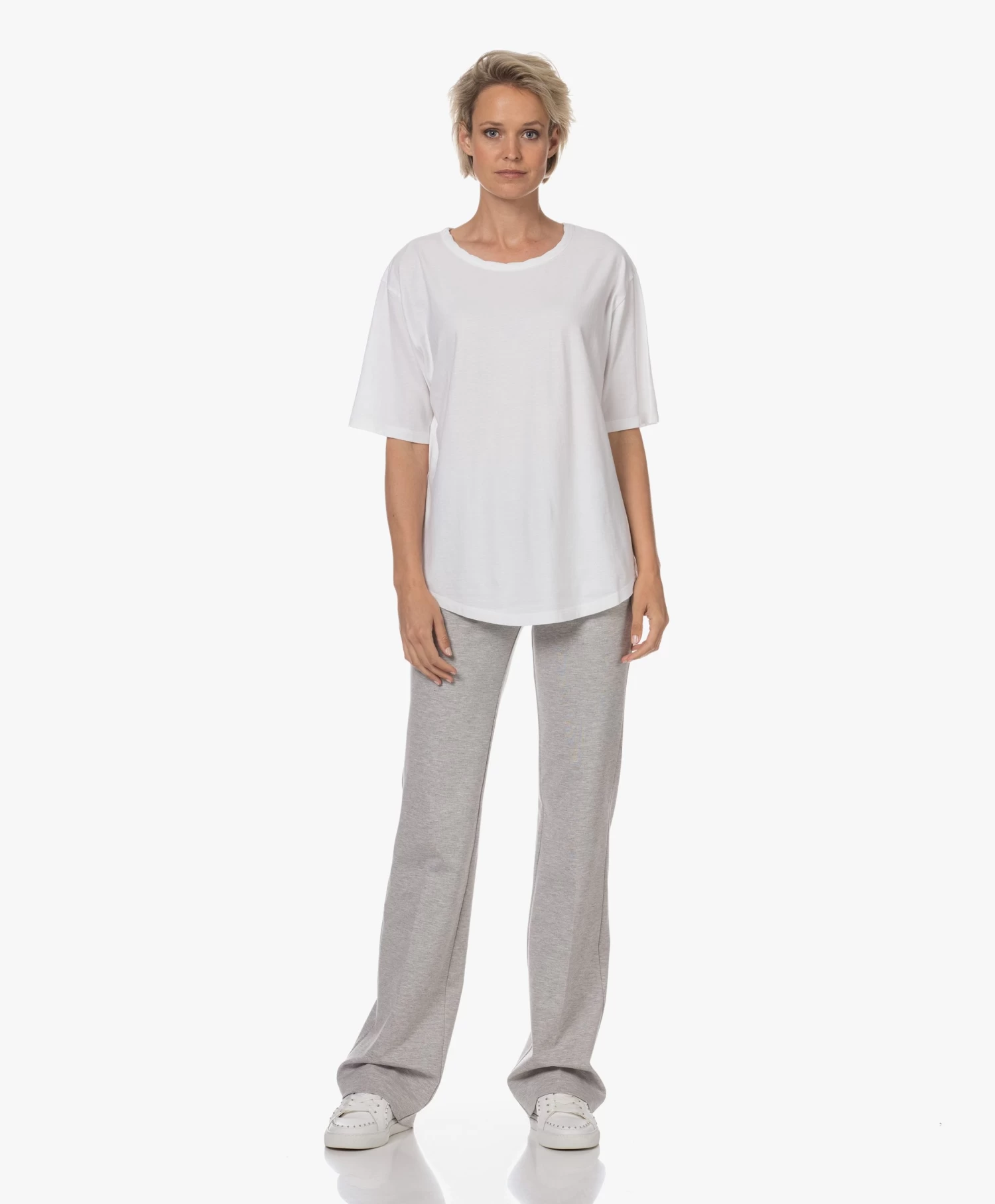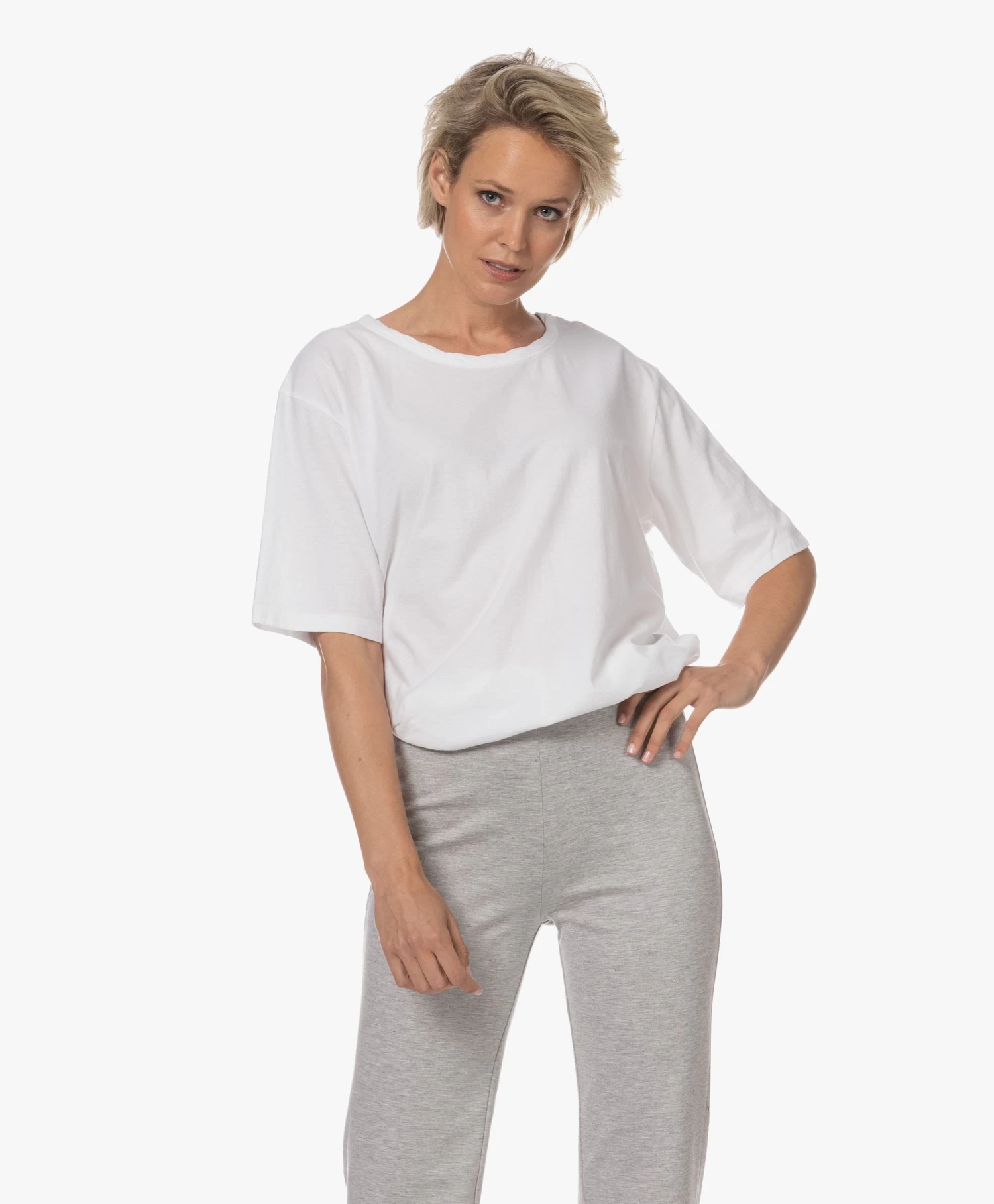 The Box van Neeve vinkt veel vakjes af: het shirt is gemaakt van biologische katoenen jersey met een verfijnde slubtextuur, is voorzien van een losvallende pasvorm en heeft een ronde hals met getwiste halsbies. Voor nog meer casual karakter rol je de korte mouwen op: dankzij de iets zwaardere jersey blijft dat prima zitten. Uitgevoerd in friswit.