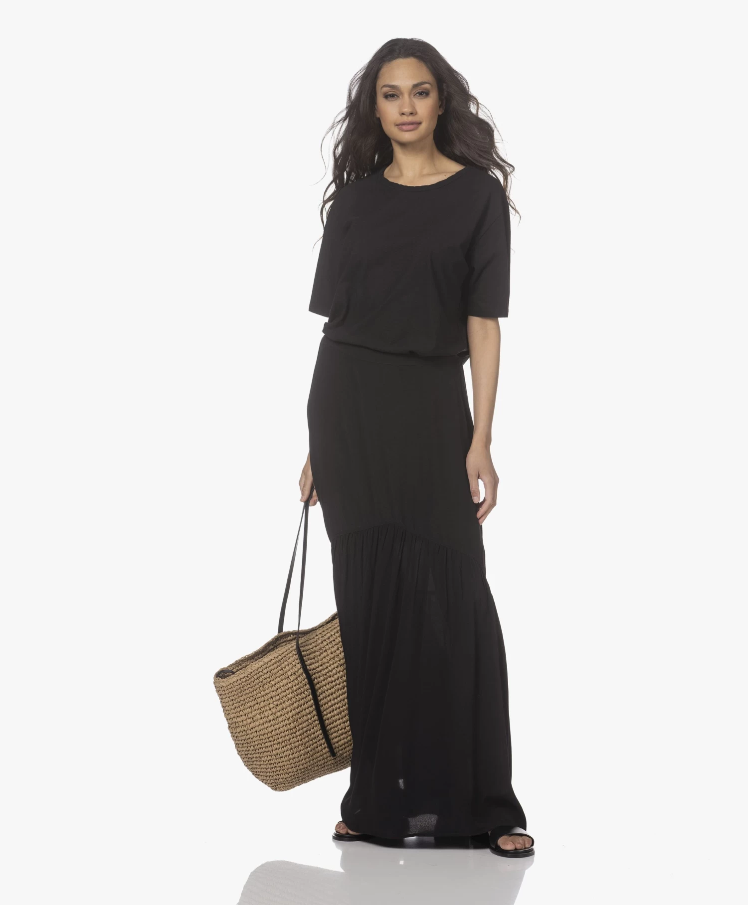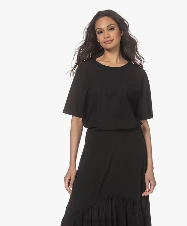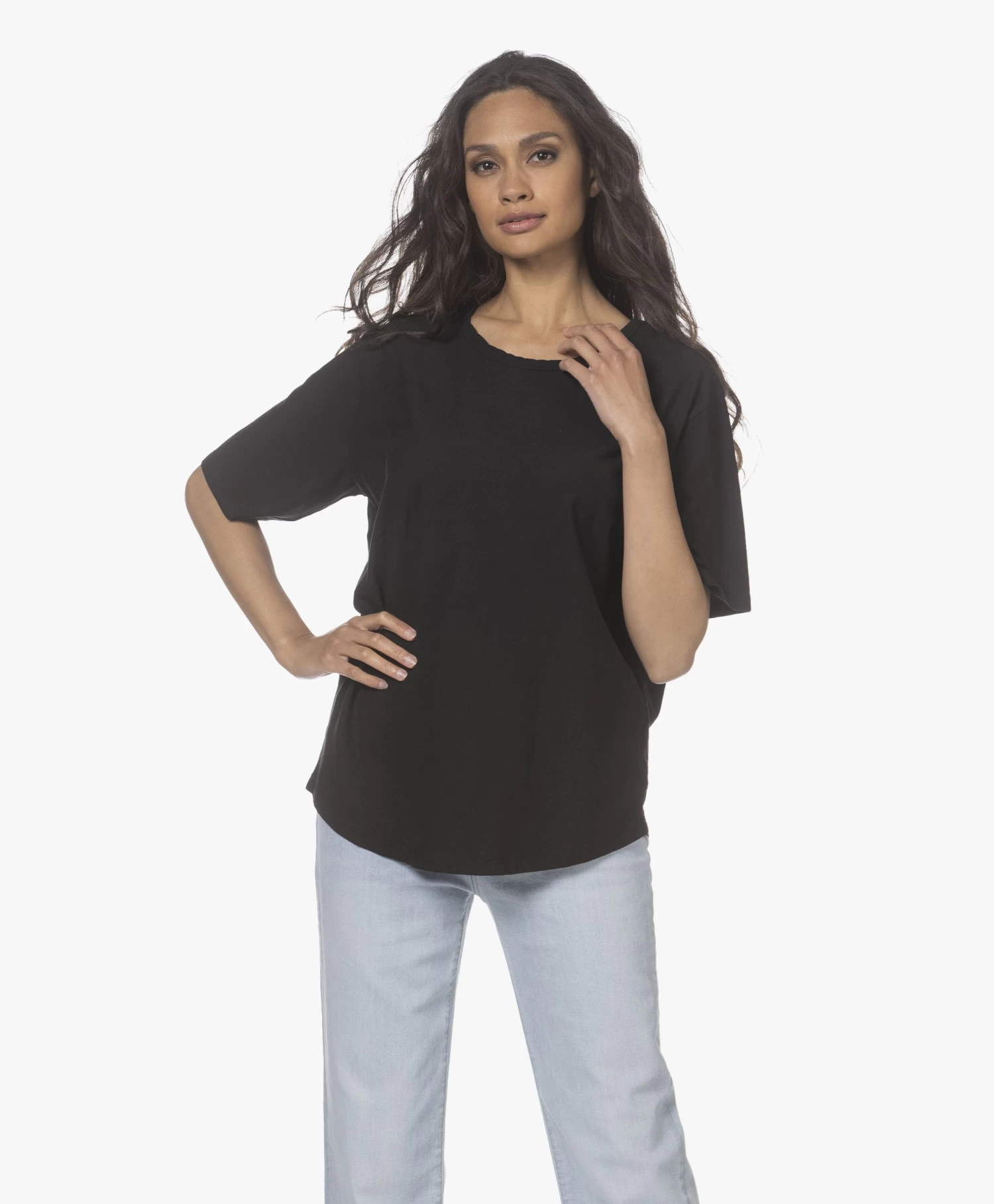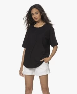 The Box van Neeve vinkt veel vakjes af: het shirt is gemaakt van biologische katoenen jersey met een verfijnde slubtextuur, is voorzien van een losvallende pasvorm en heeft een ronde hals met getwiste halsbies. Voor nog meer casual karakter rol je de korte mouwen op: dankzij de iets zwaardere jersey blijft dat prima zitten. Uitgevoerd in zwart.