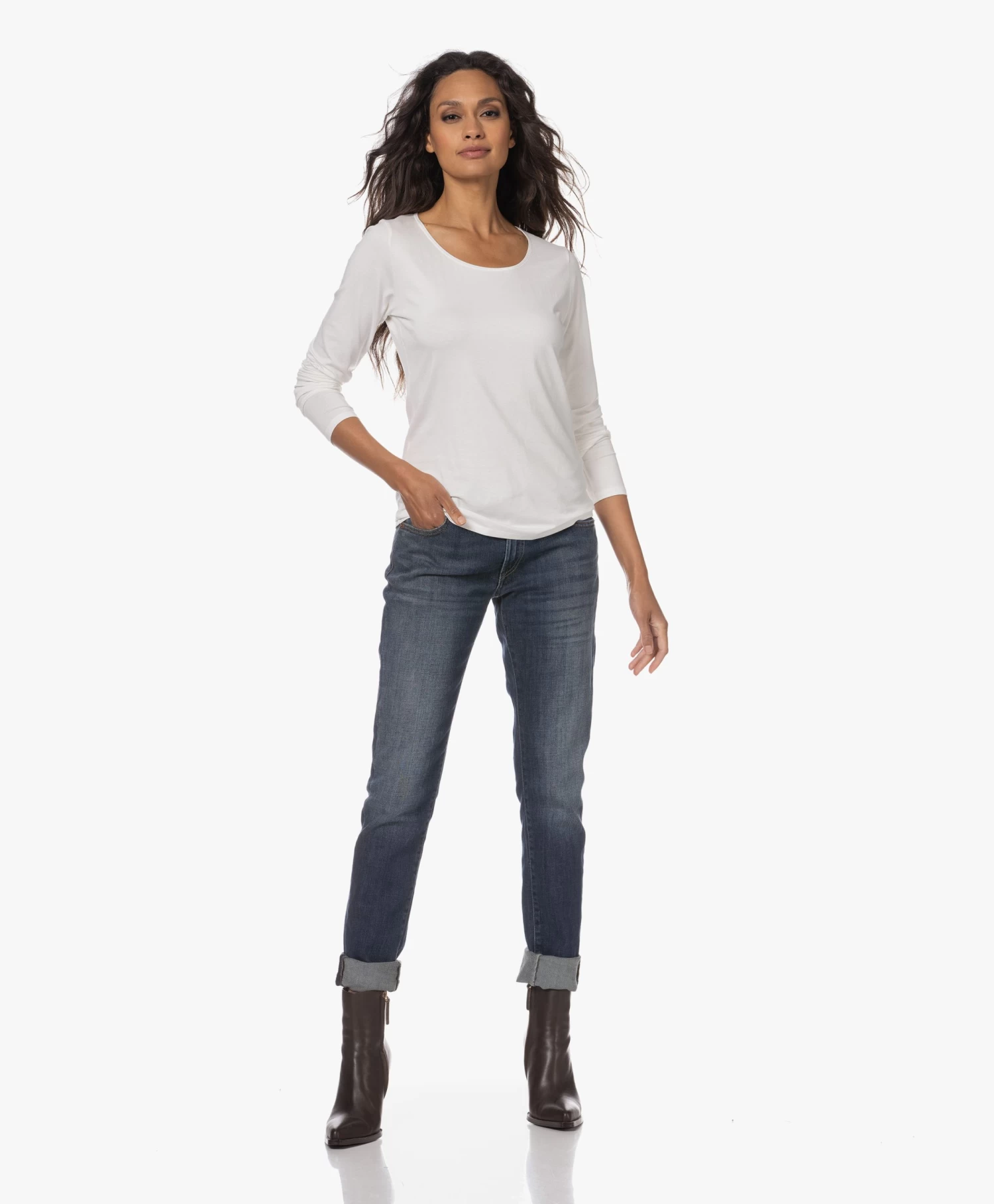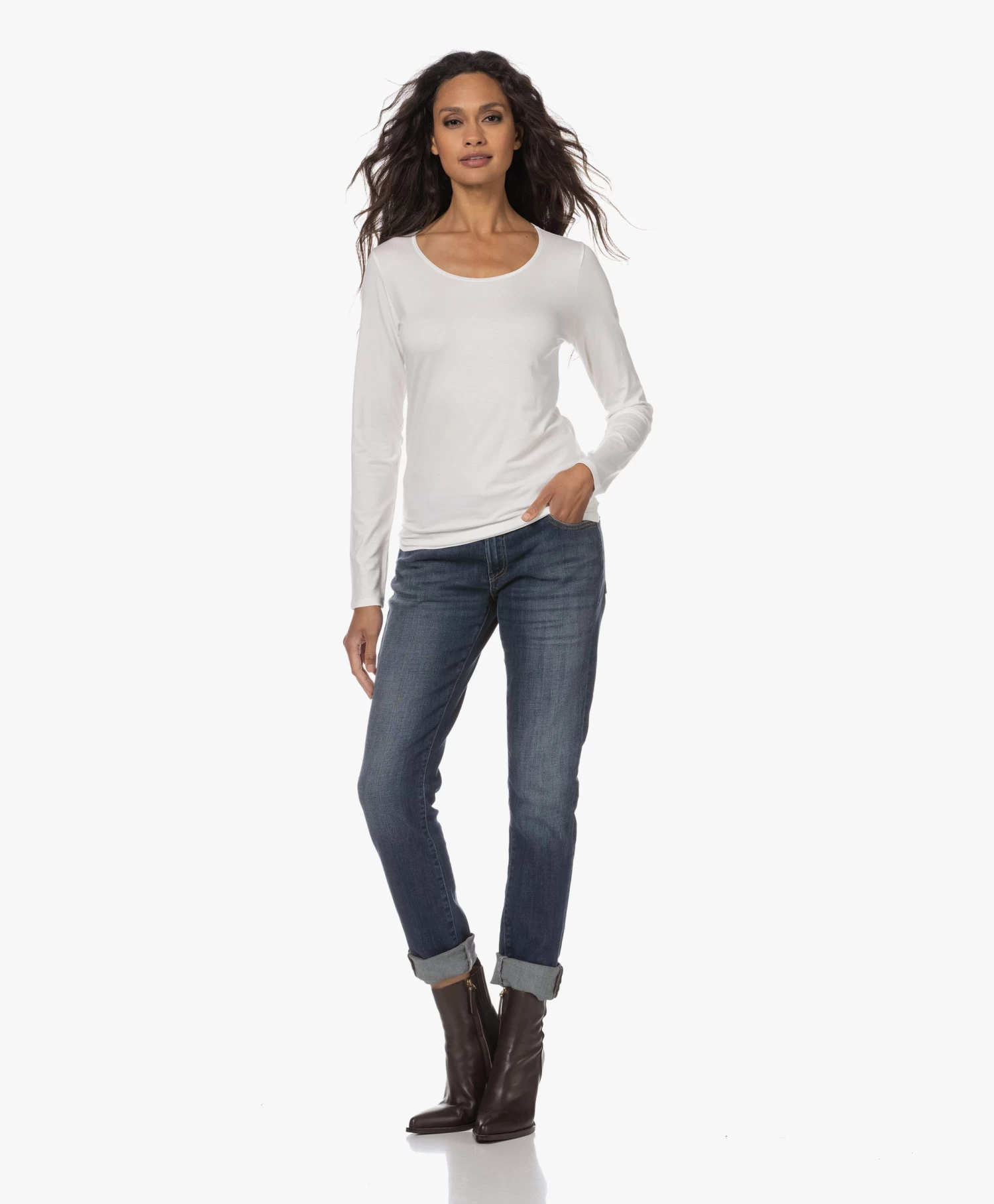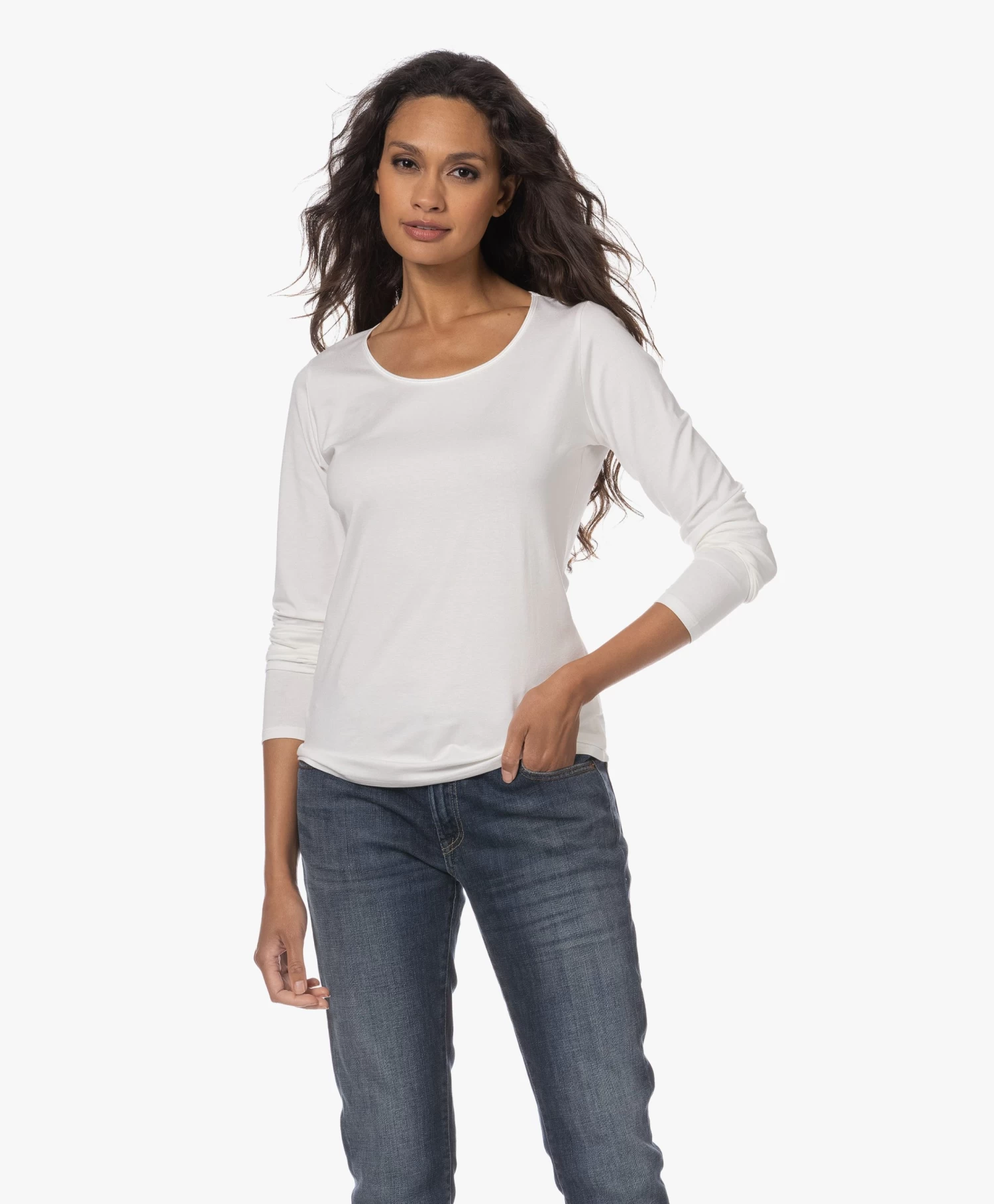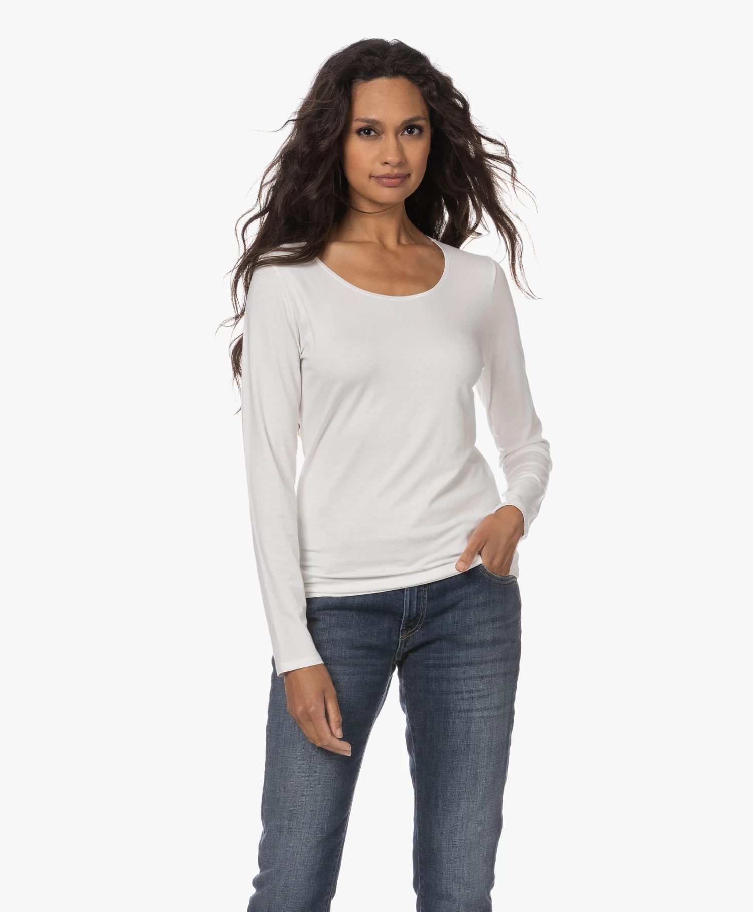 no man’s land is een betrouwbaar adres voor basic essentials die net even wat verfijnder en vrouwelijker zijn. Bij dit licht aangesloten ivoorkleurige T-shirt is het de smalle halsbies van glanzende stretchsatijn die het verschil maakt. Gemaakt van zachte stretchviscose single-jersey.