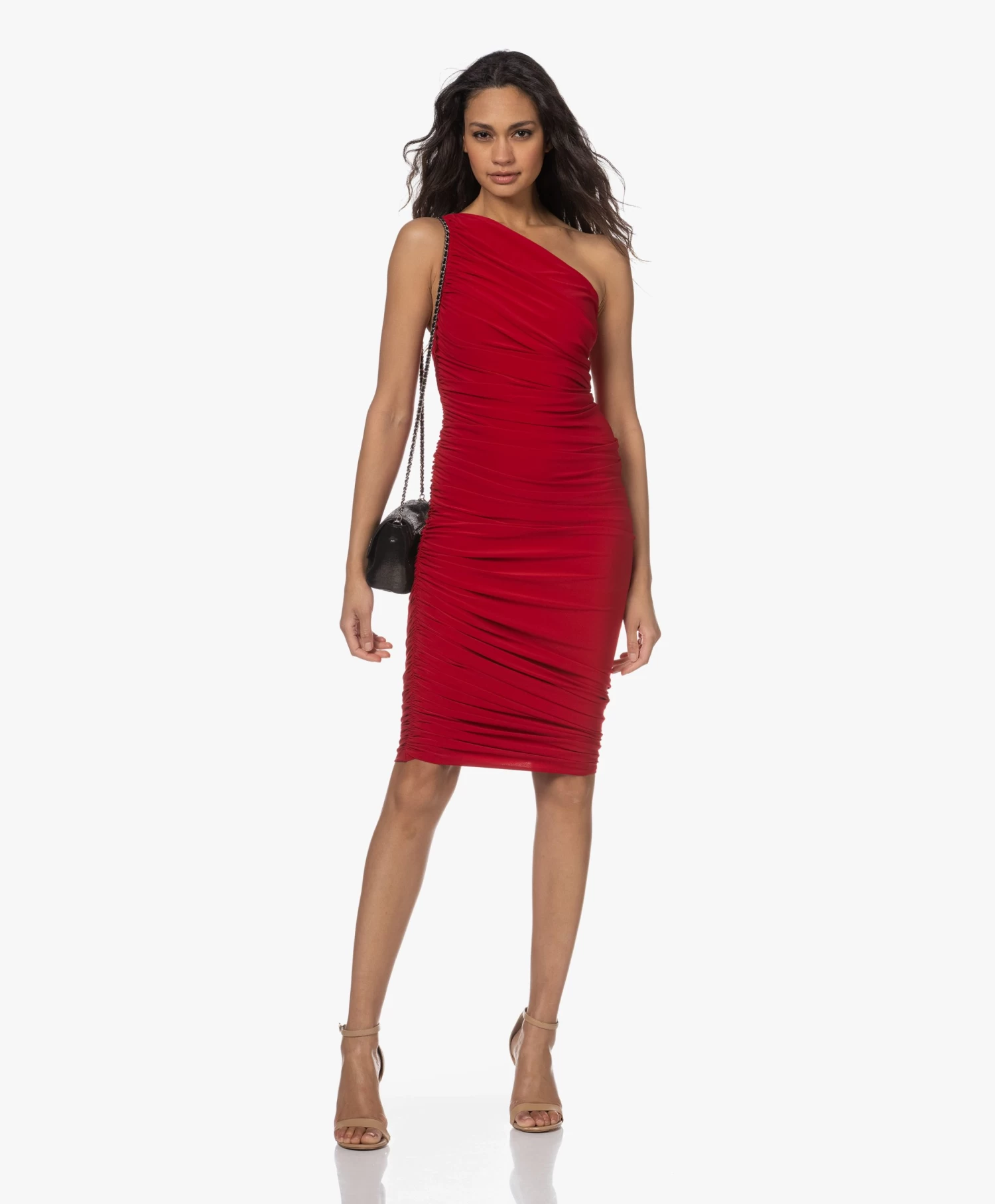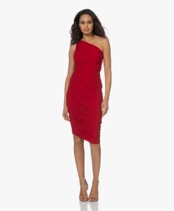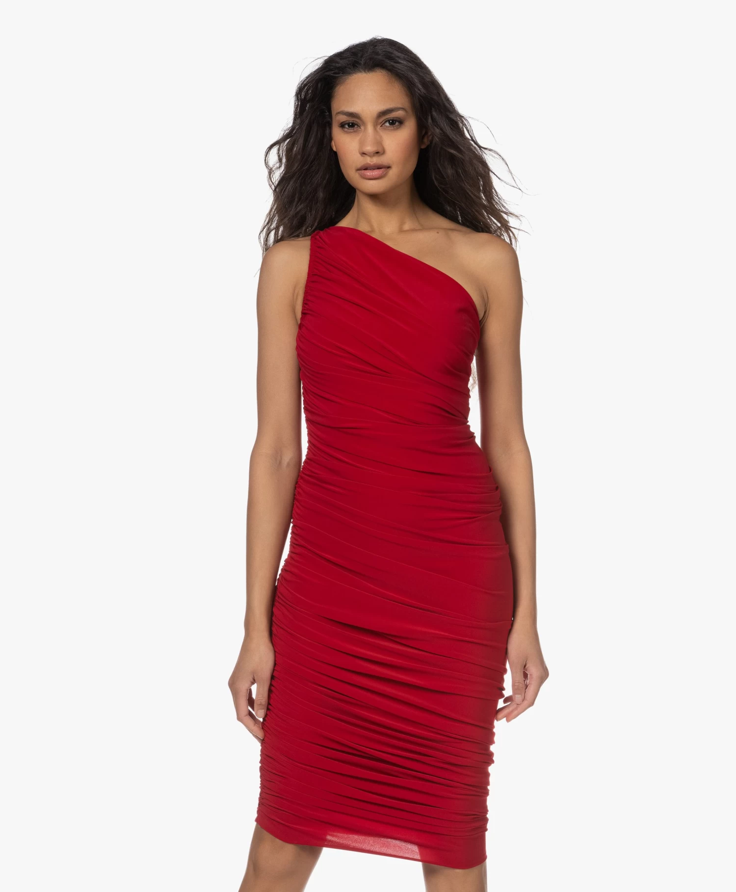 Een ‘fail-proof’ jurk om gelegenheid na gelegenheid, seizoen na seizoen en jaar na jaar weer uit de kast te pakken: de rode Diana jurk van Norma Kamali. De kenmerkende rimpelplooien omlijsten je vrouwelijke silhouet terwijl ze tegelijkertijd het een en ander verhullen – daar draagt ook de geïntegreerde bodysuit aan bij. Het asymmetrische karakter van de one-shoulder halslijn wordt weerspiegeld bij de zoom. Bovendien is de zwaarvallende tech jersey extreem zacht, soepel, mat en stretchy.
