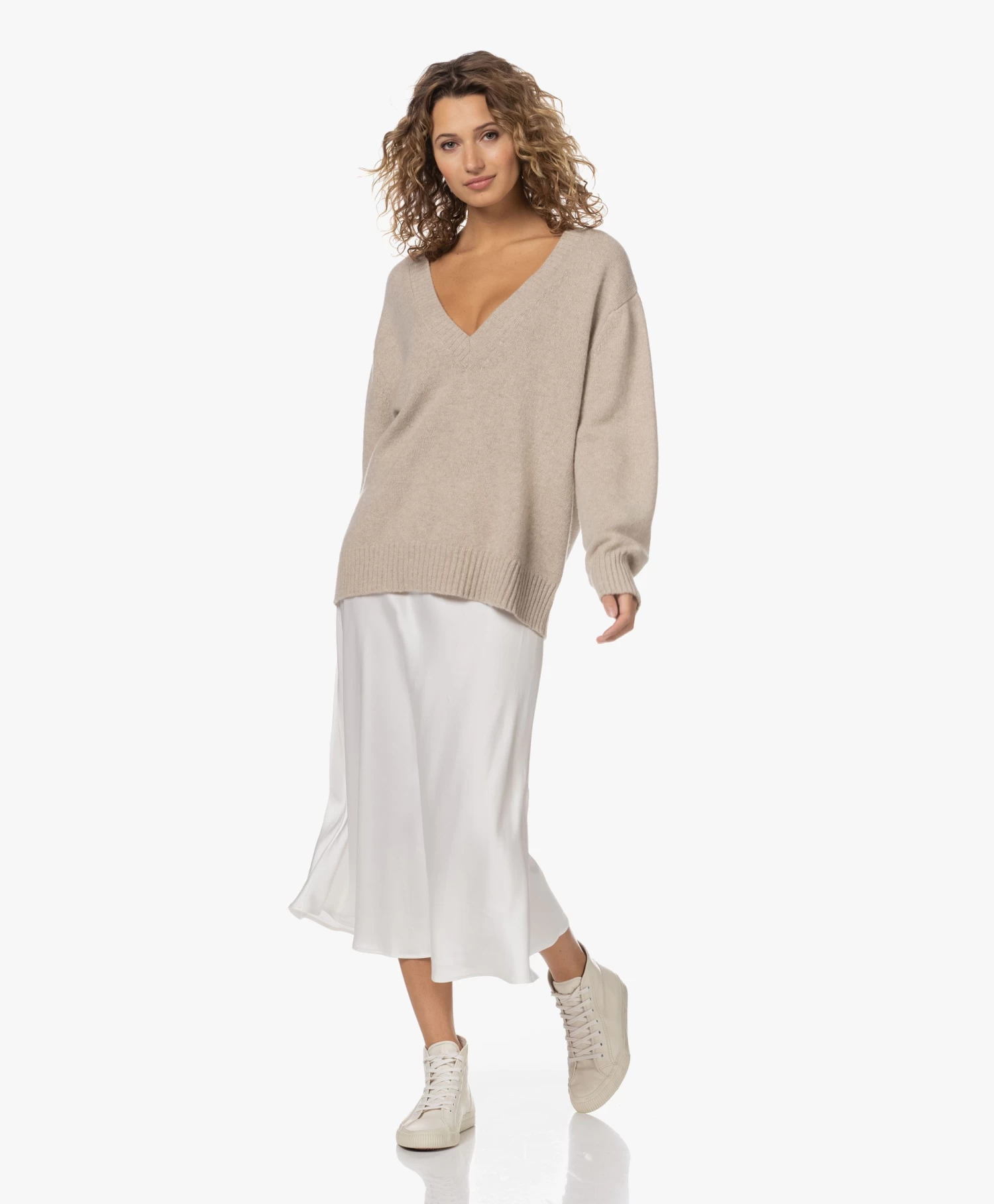 Resort Finest Frivo Satijnen Midi Rok – Ecru