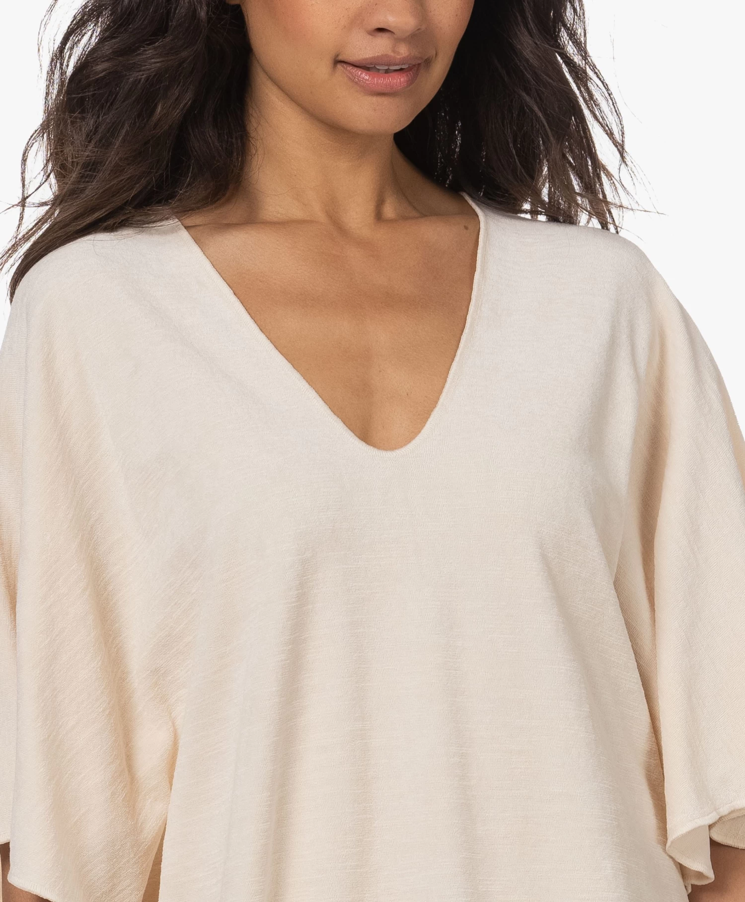 – Halflange, wijde en aangeknipte vlindermouwen tot de elleboogÂ