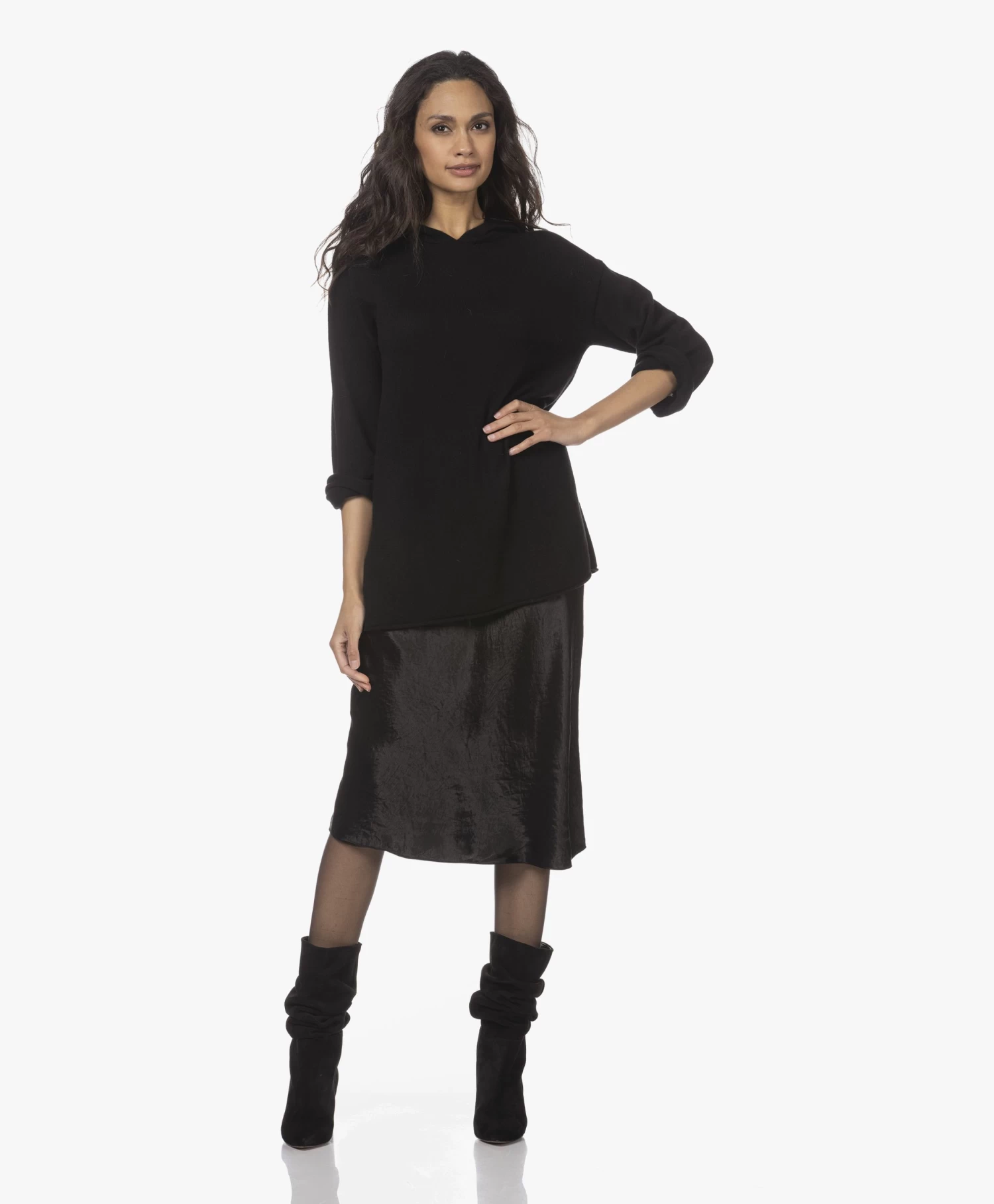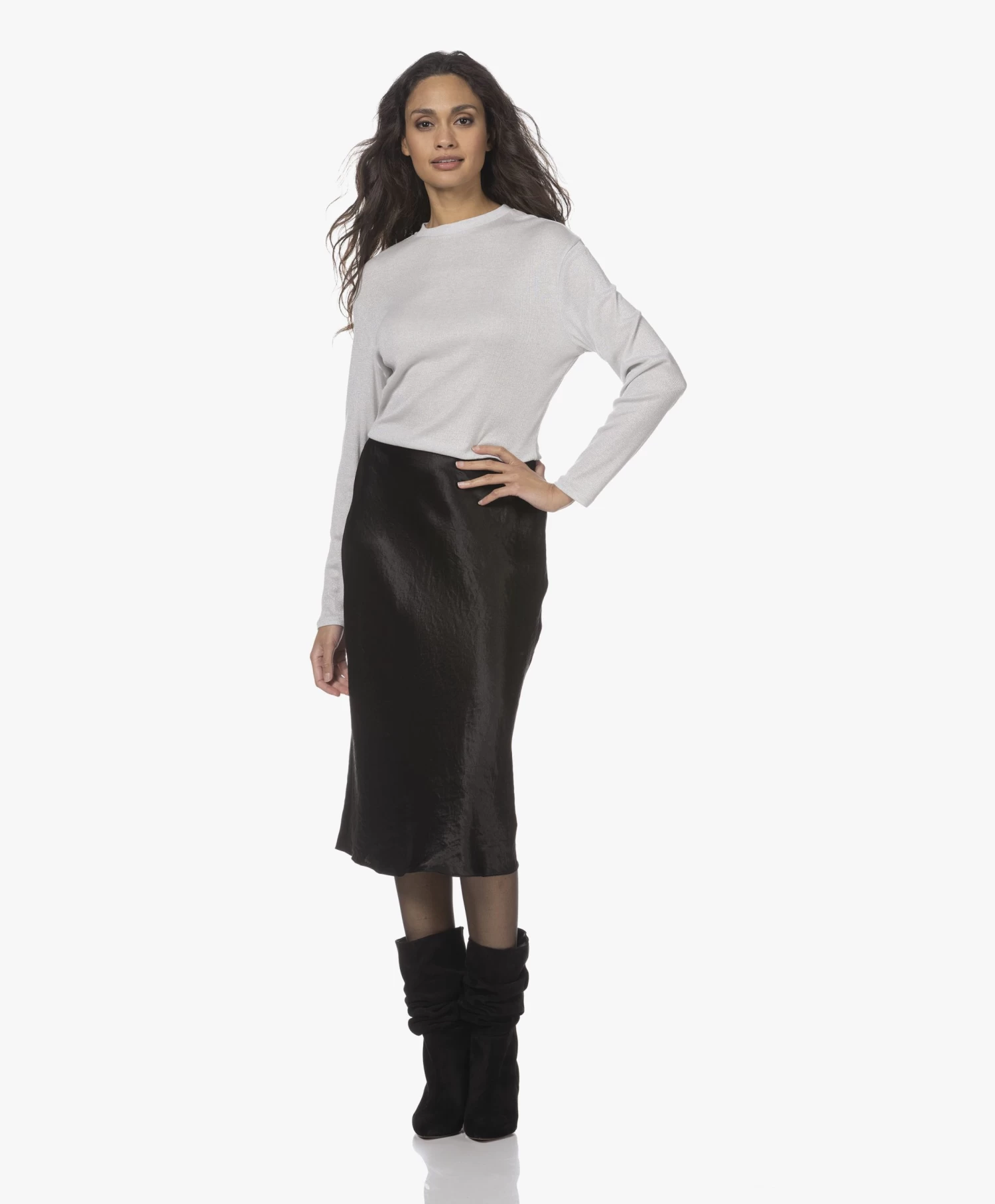 – Subtiel uitlopend silhouet, midi lengte