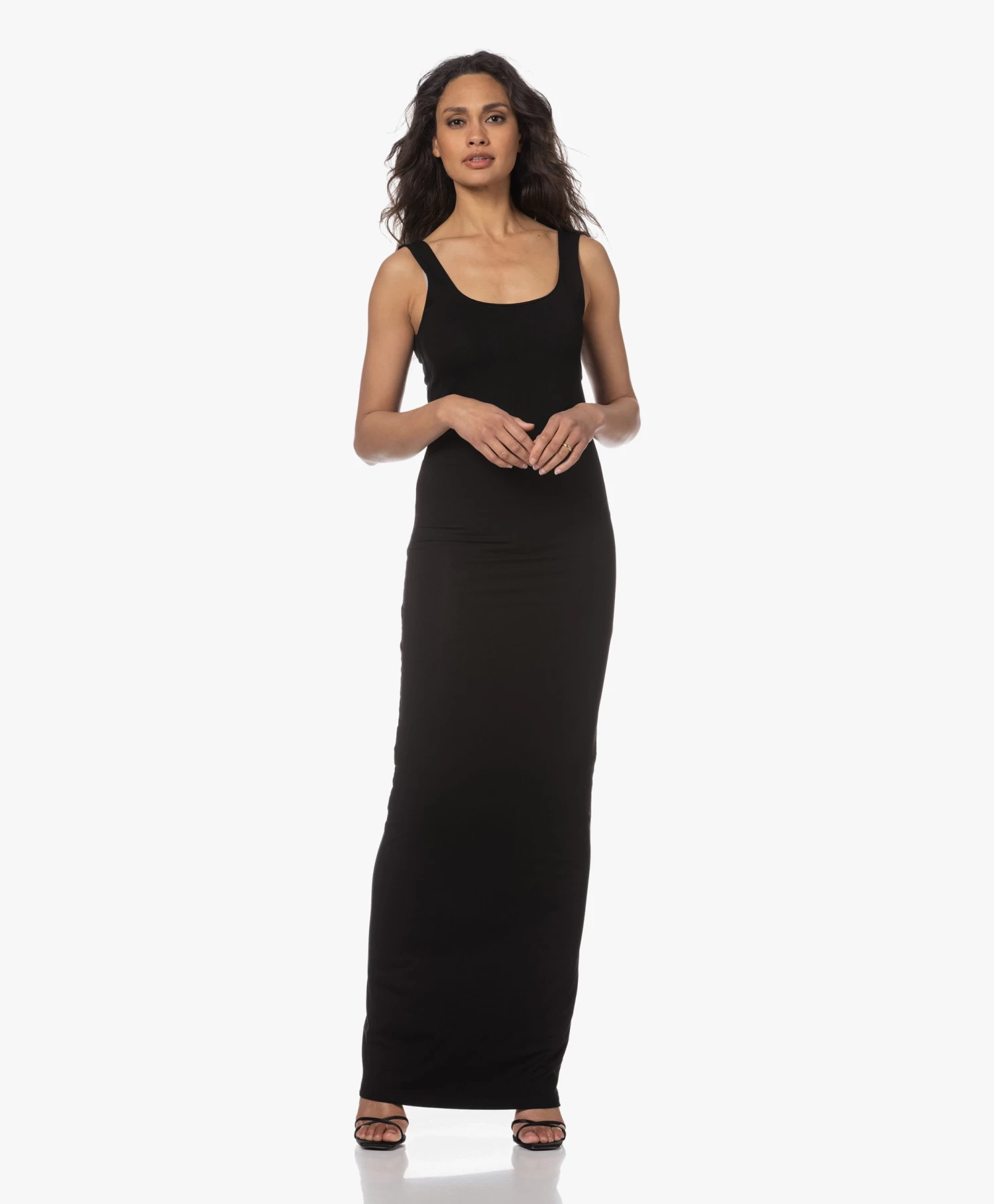 Voel je vrouwelijk en zelfverzekerd in VIVEH’s zwarte Sapphire jurk. De stevige, extra stretchy Ecovero viscose jersey voegt zich soepel naar je lichaam. De top met lage vierkante halslijn is dubbellaags tot onder de borst: je kunt met een gerust hart je BH een dagje vrij geven. De extra lange lengte maakt het mogelijk de slim-fit jurk rond heupen en taille in rimpelplooien te leggen waardoor je qua roklengte kunt variëren.