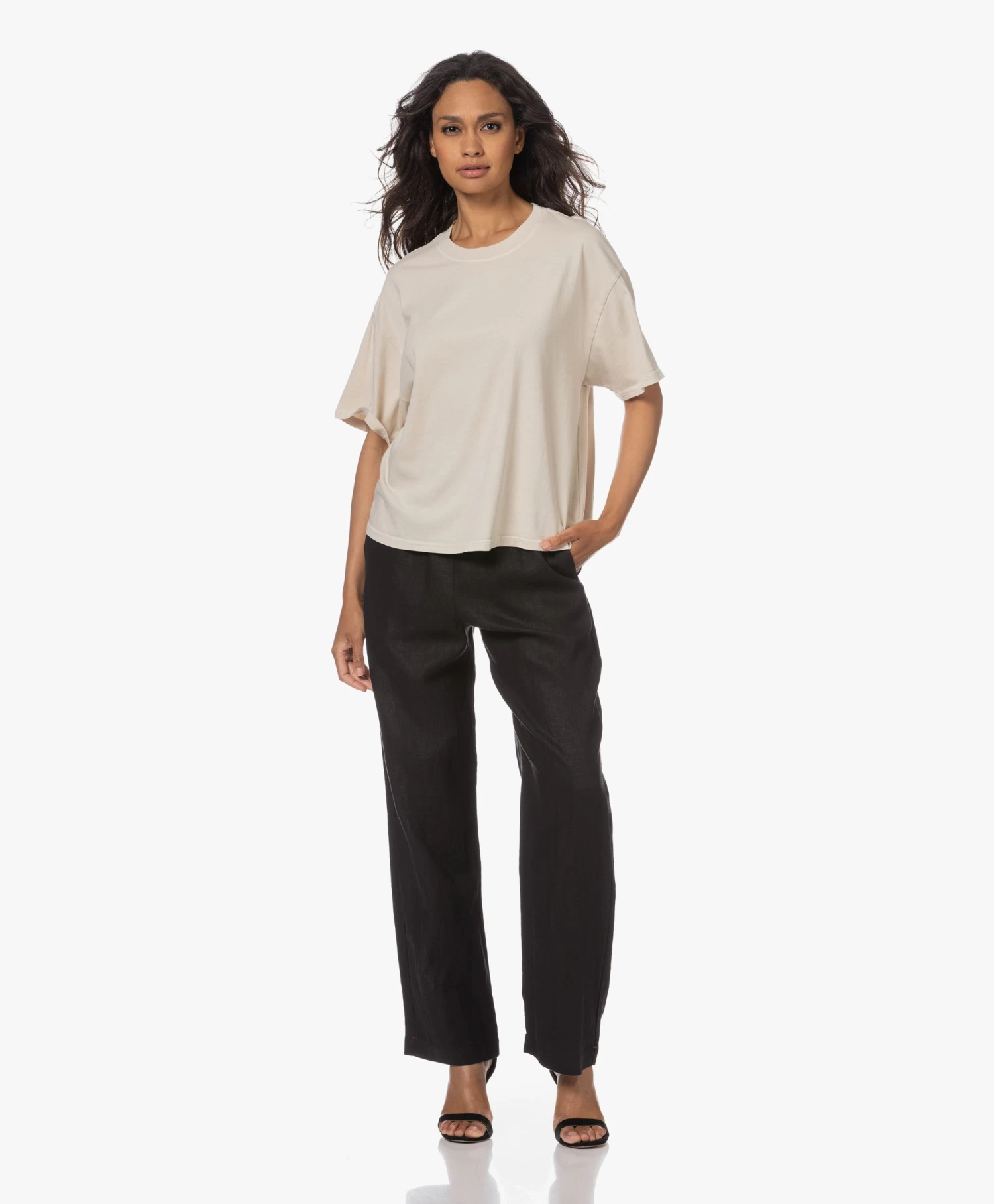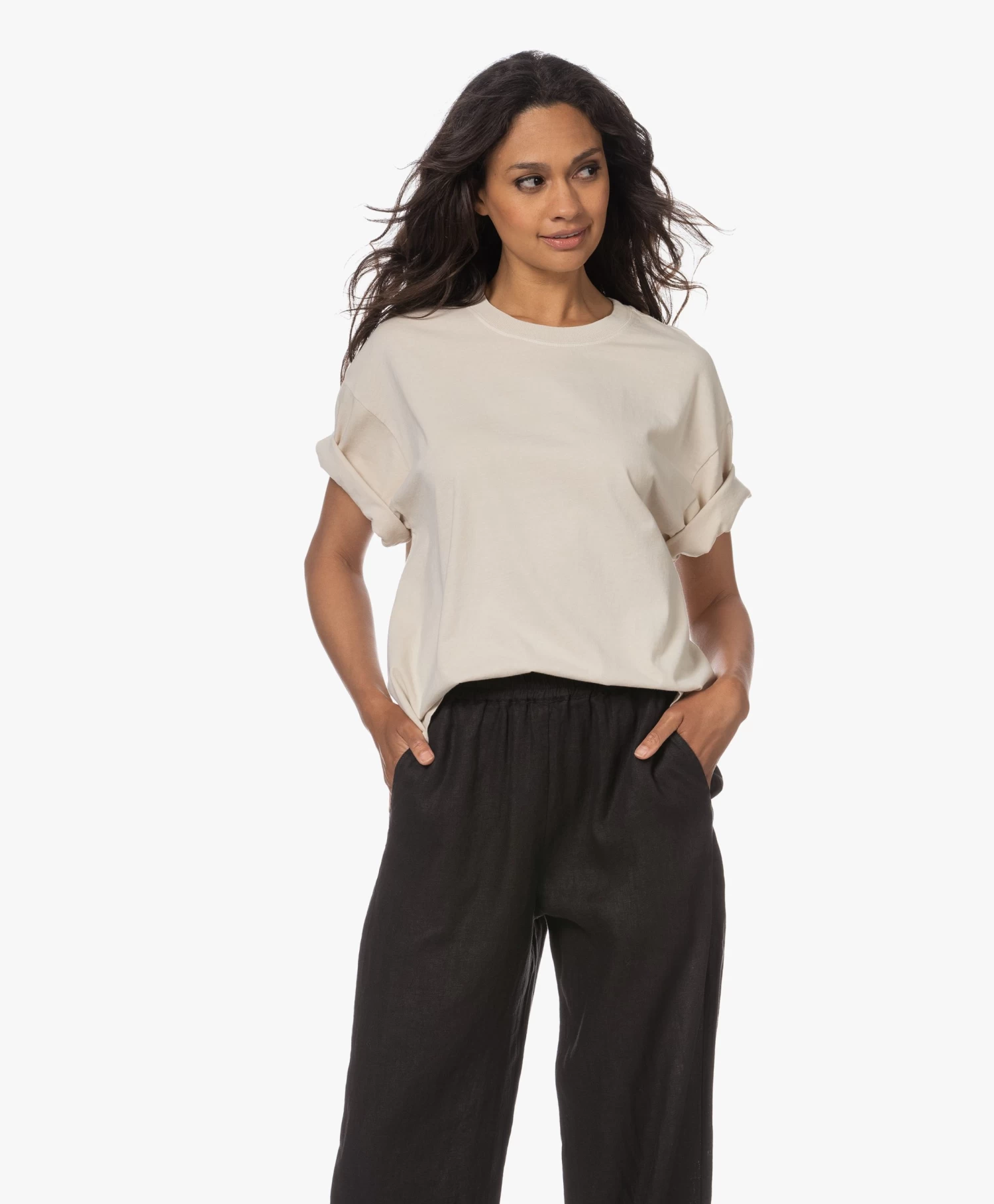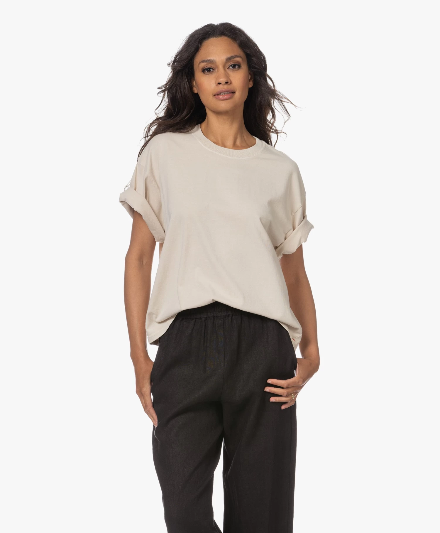 Ons nieuwe favoriete item is wat ons betreft het Palmer T-shirt van XÍRENA dat gemaakt is van een hoogwaardige kwaliteit katoenjersey. De verlaagde schoudernaden geven het T-shirt een casual look die comfy draagt terwijl de lichtbeige kleur makkelijk combineert met andere kleuren uit jouw kast. Een echte allrounder dus!